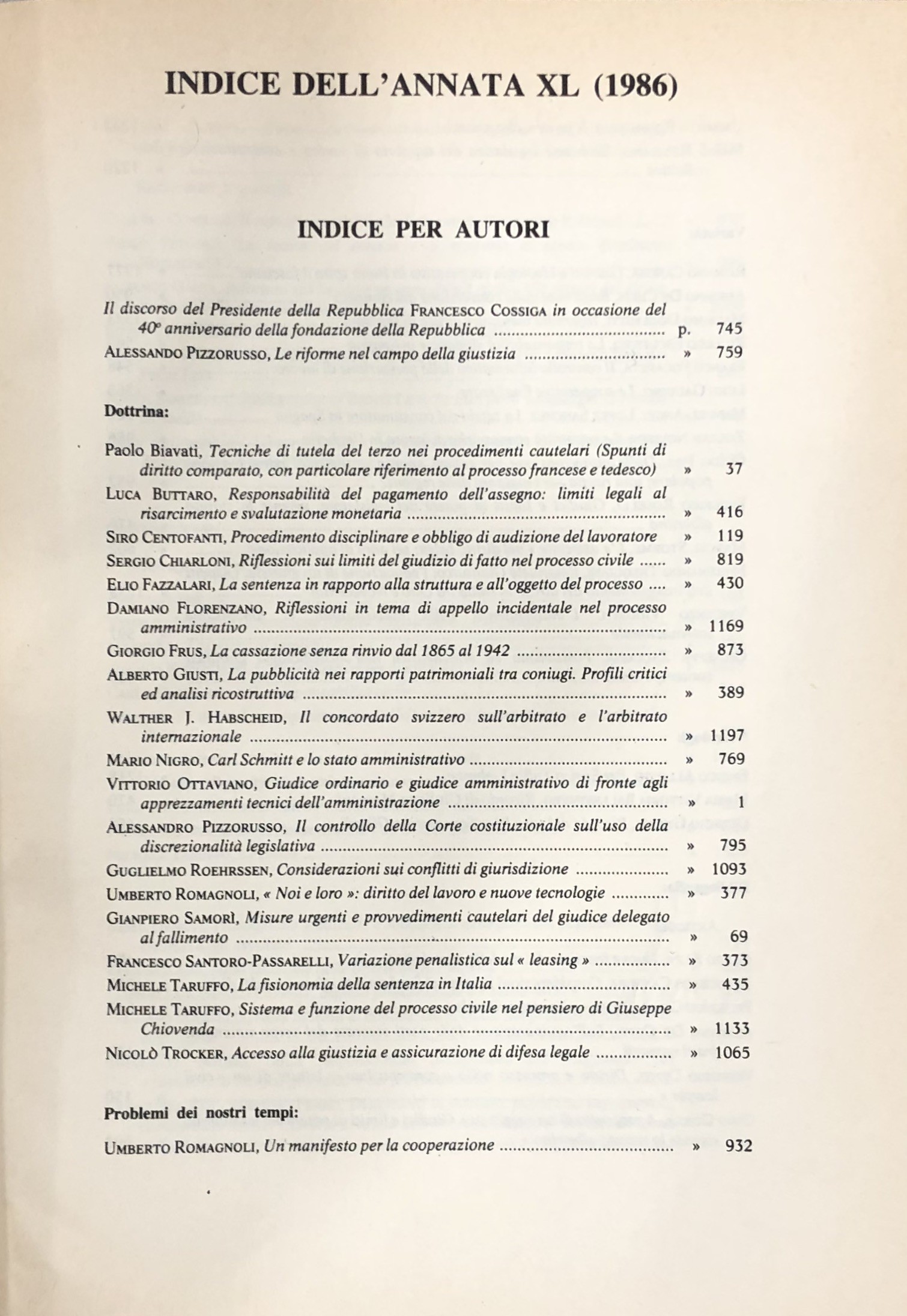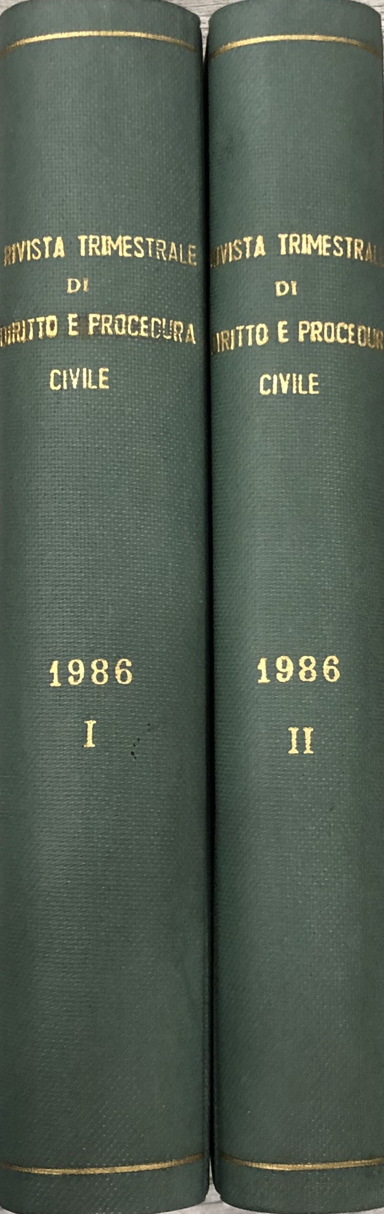 Rivista trimestrale di diritto e procedura civile. Fondata da: A. Cicu e E. Redenti. Diretta da: G. Auletta, E. Bassanelli, F. Carpi, F. Galgano, M. Giorgianni, G.F. Mancini, L. Mengoni, U. Romagnoli, G. Santini, F. Santoro Passarelli. Anno XL - 1986