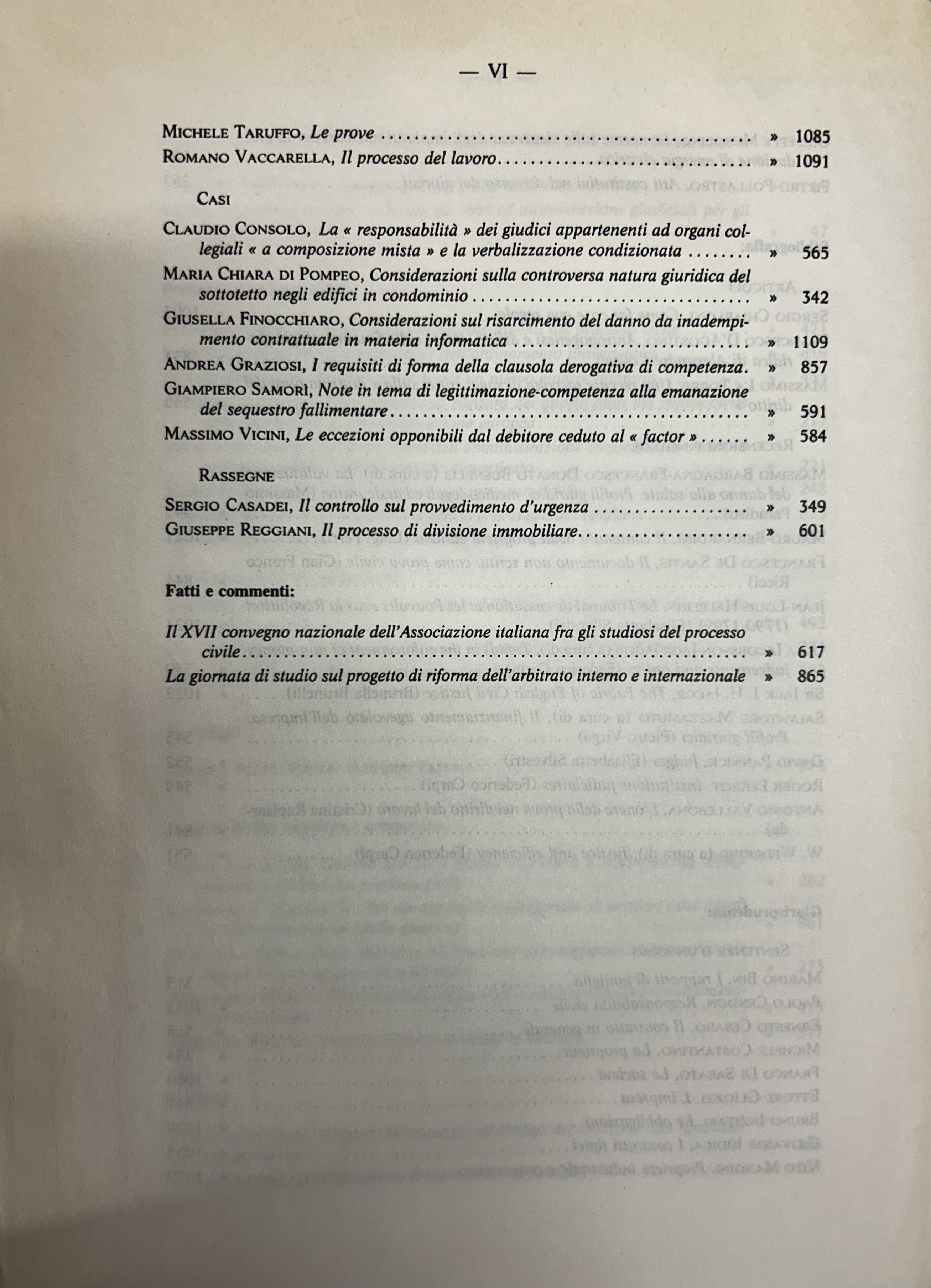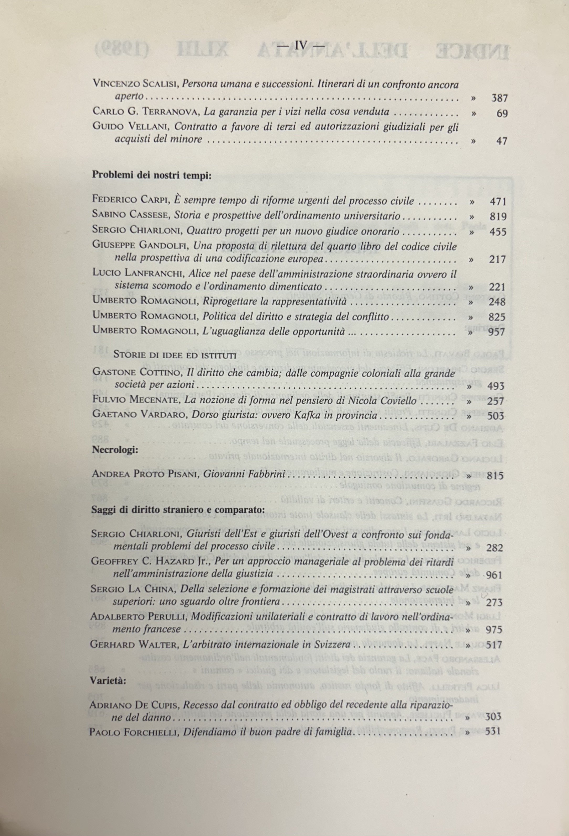 Bin M. - Carpi F. - Cassese S. - Cendon P. - Chiarloni S. - Costantino M. - Cottino G. - De Cupis A. - Di Sabato F. - Fazzalari E. - Forchielli P. - Giorgianni M. - Guastini R. - Irti N. - La China S. - Lanfranchi L. - Mancini F. - Montesano L. - Pace A. - Proto Pisani A. - Pugliese G. - Punzi C. - Romagnoli U. - Taruffo M. - Vaccarella R. et alii