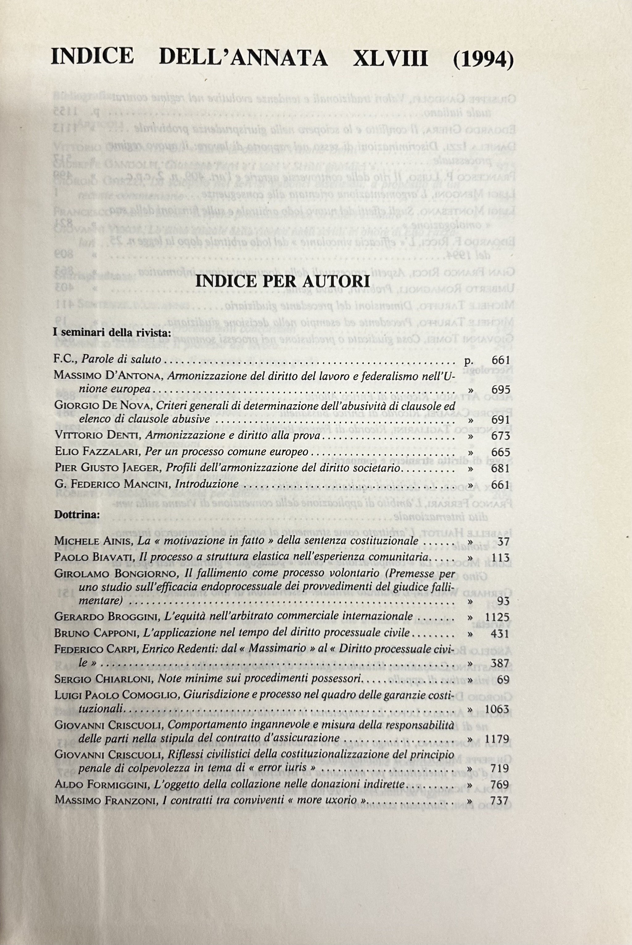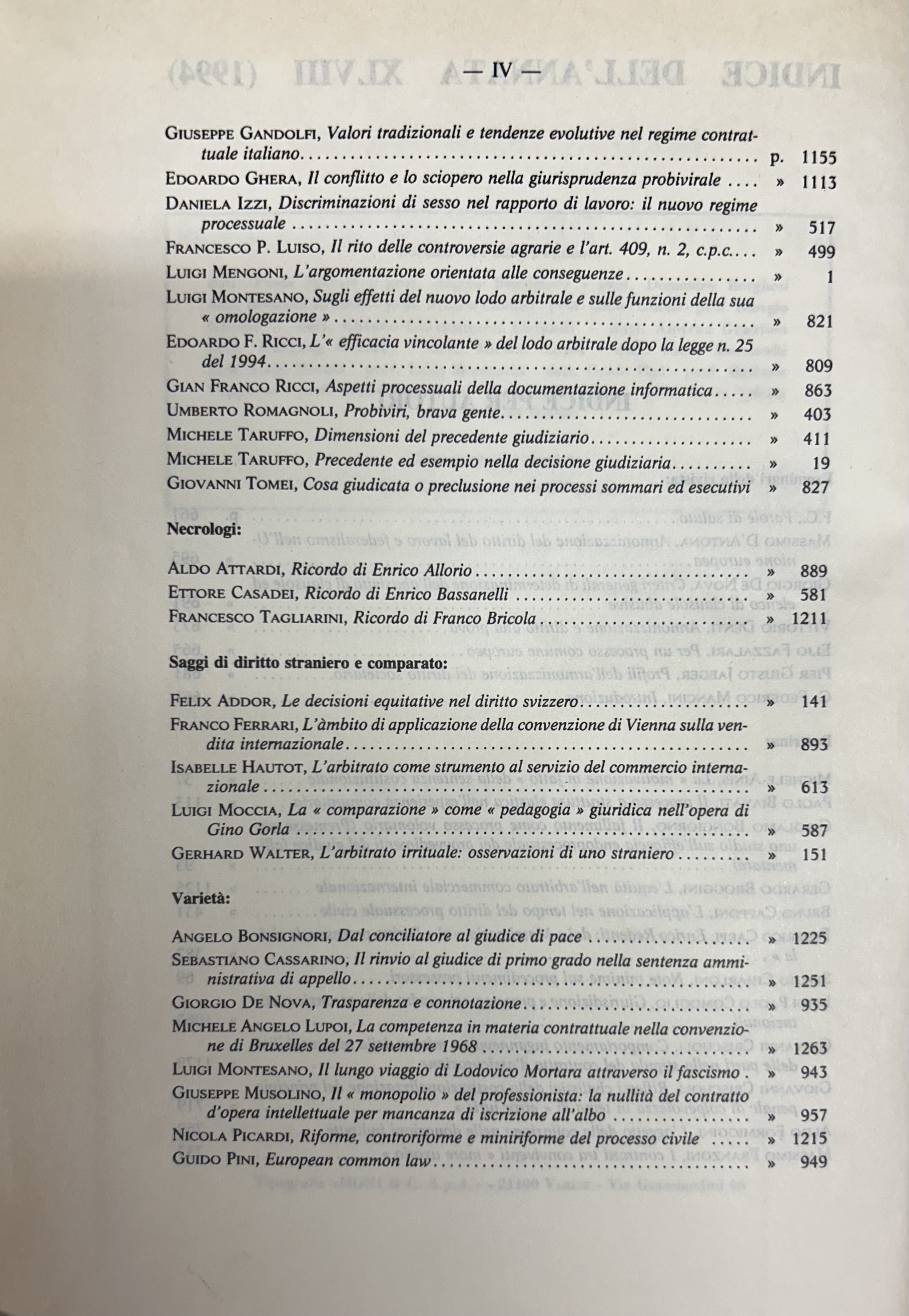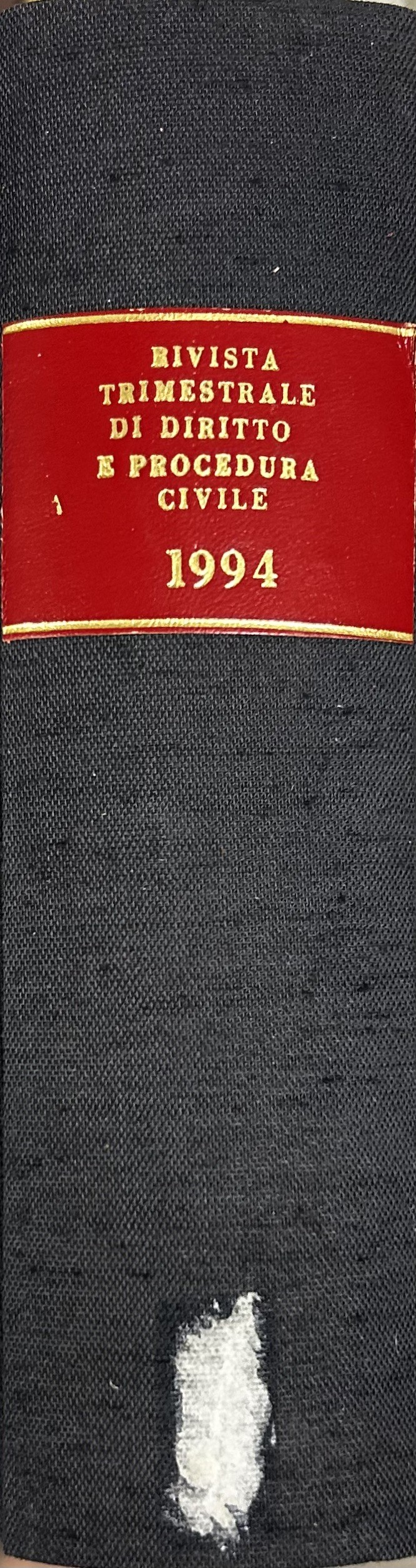 Rivista trimestrale di diritto e procedura civile. Fondata da: A. Cicu, E. Redenti e T. Carnacini. Diretta da: G. Auletta, M. Bin, F. Carpi, G. De Nova, F. Galgano, M. Giorgianni, N. Irti, G.F. Mancini, L. Mengoni, U. Romagnoli, F. Santoro Passarelli, M. Taruffo. Anno XLVIII - 1994