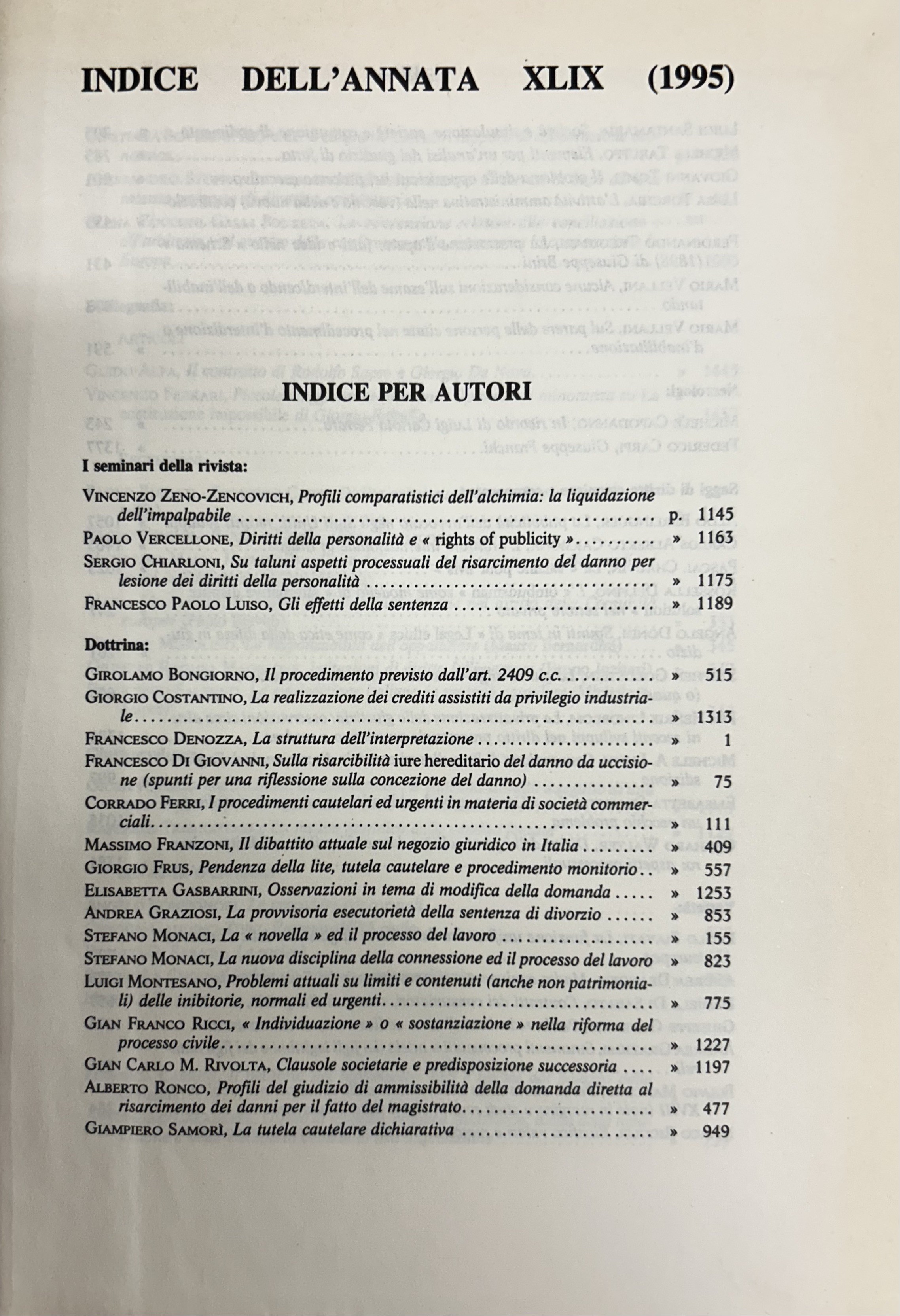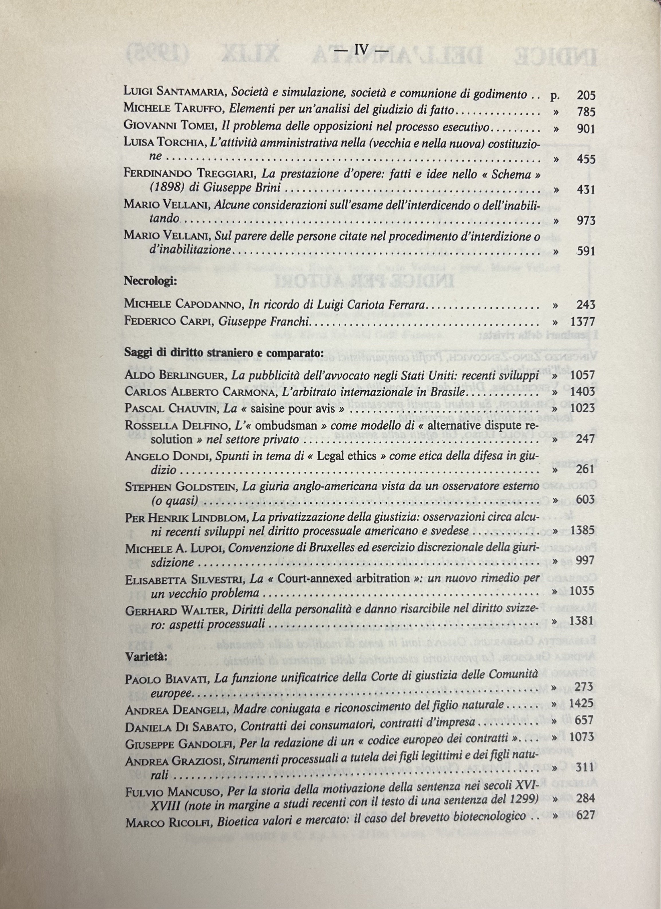 Rivista trimestrale di diritto e procedura civile. Fondata da: A. Cicu, E. Redenti e T. Carnacini. Diretta da: G. Auletta, M. Bin, F. Carpi, G. De Nova, G. Franchi, F. Galgano, M. Giorgianni, N. Irti, G.F. Mancini, L. Mengoni, U. Romagnoli, F. Santoro Passarelli, M. Taruffo. Anno XLIX - 1995