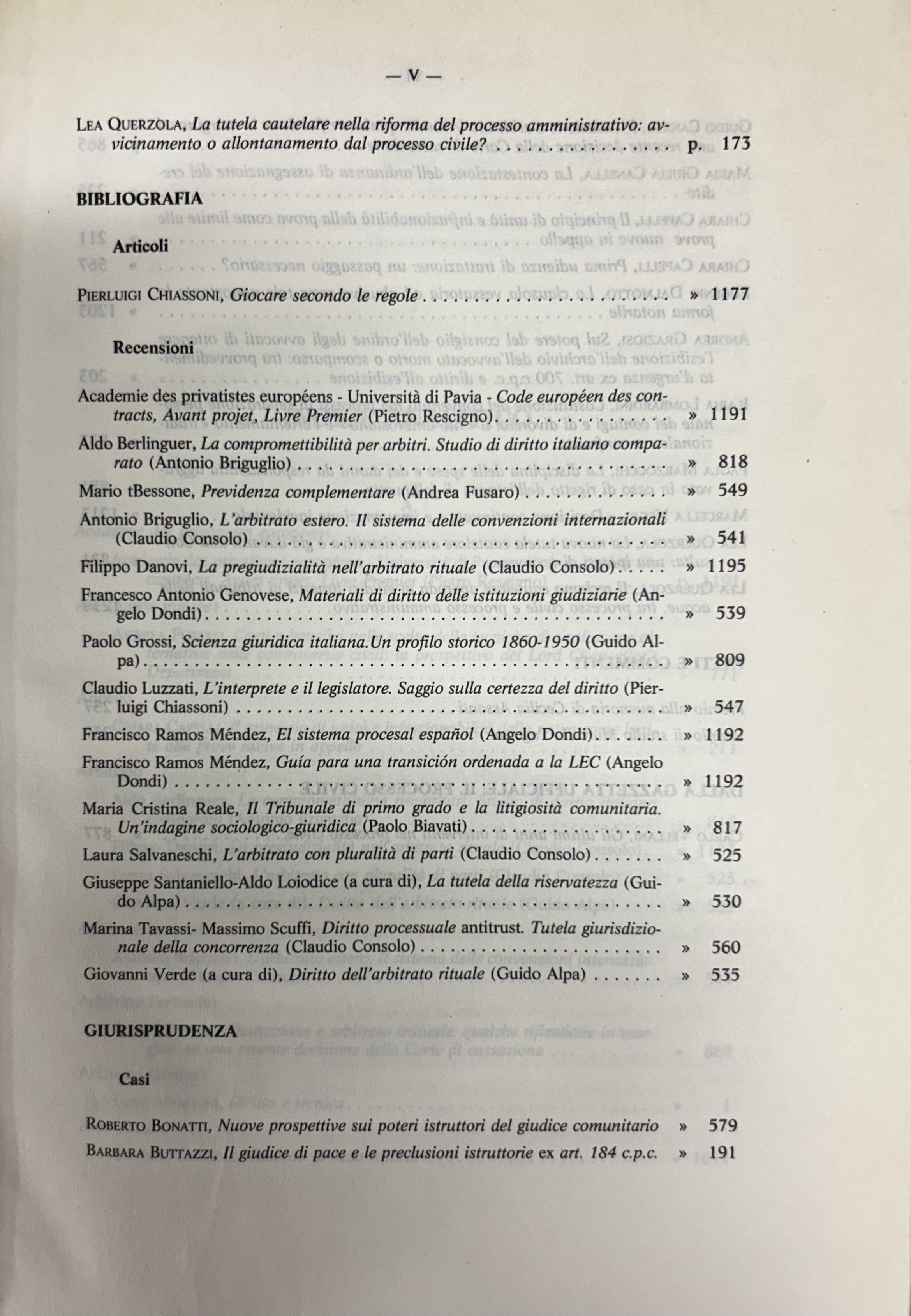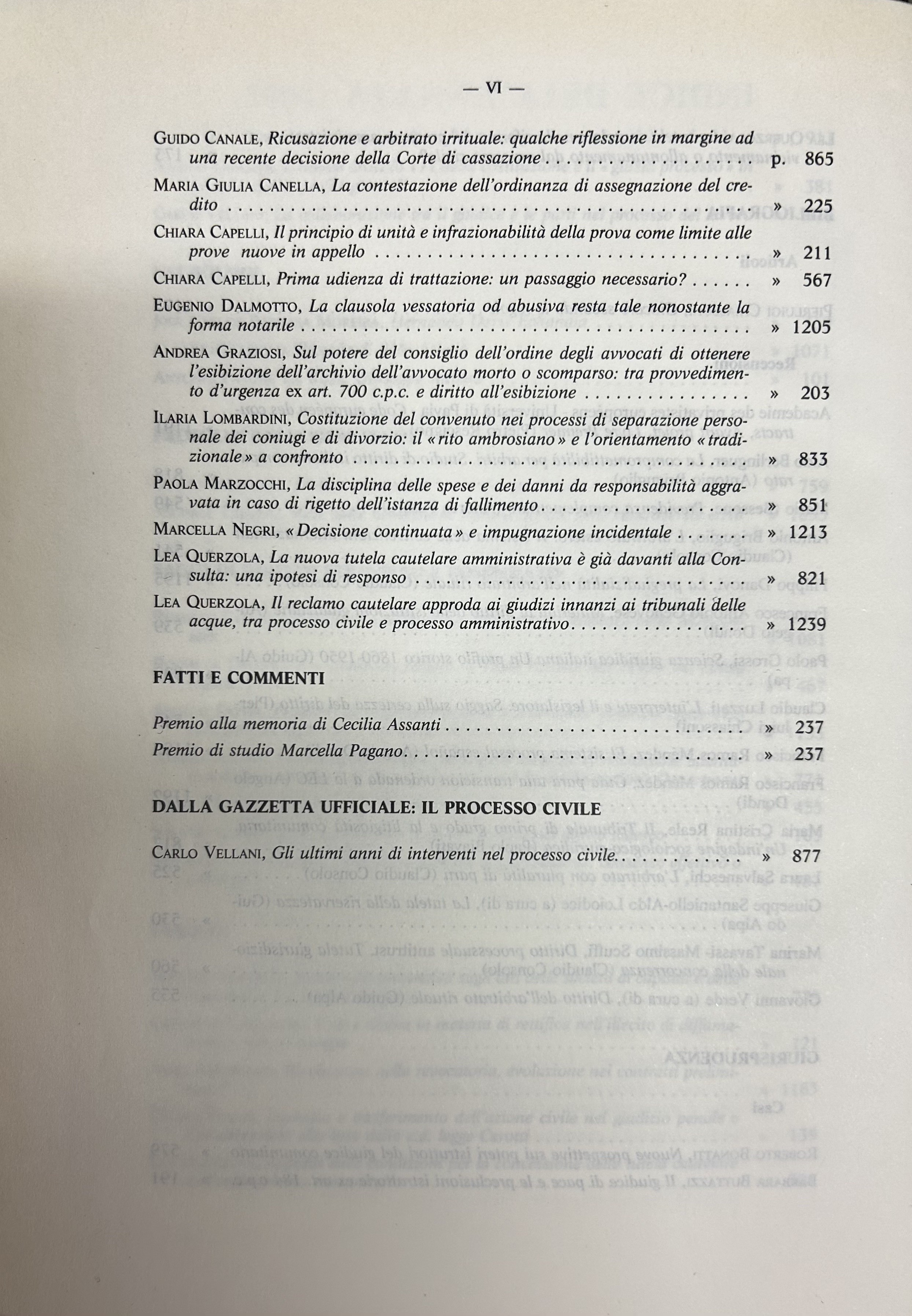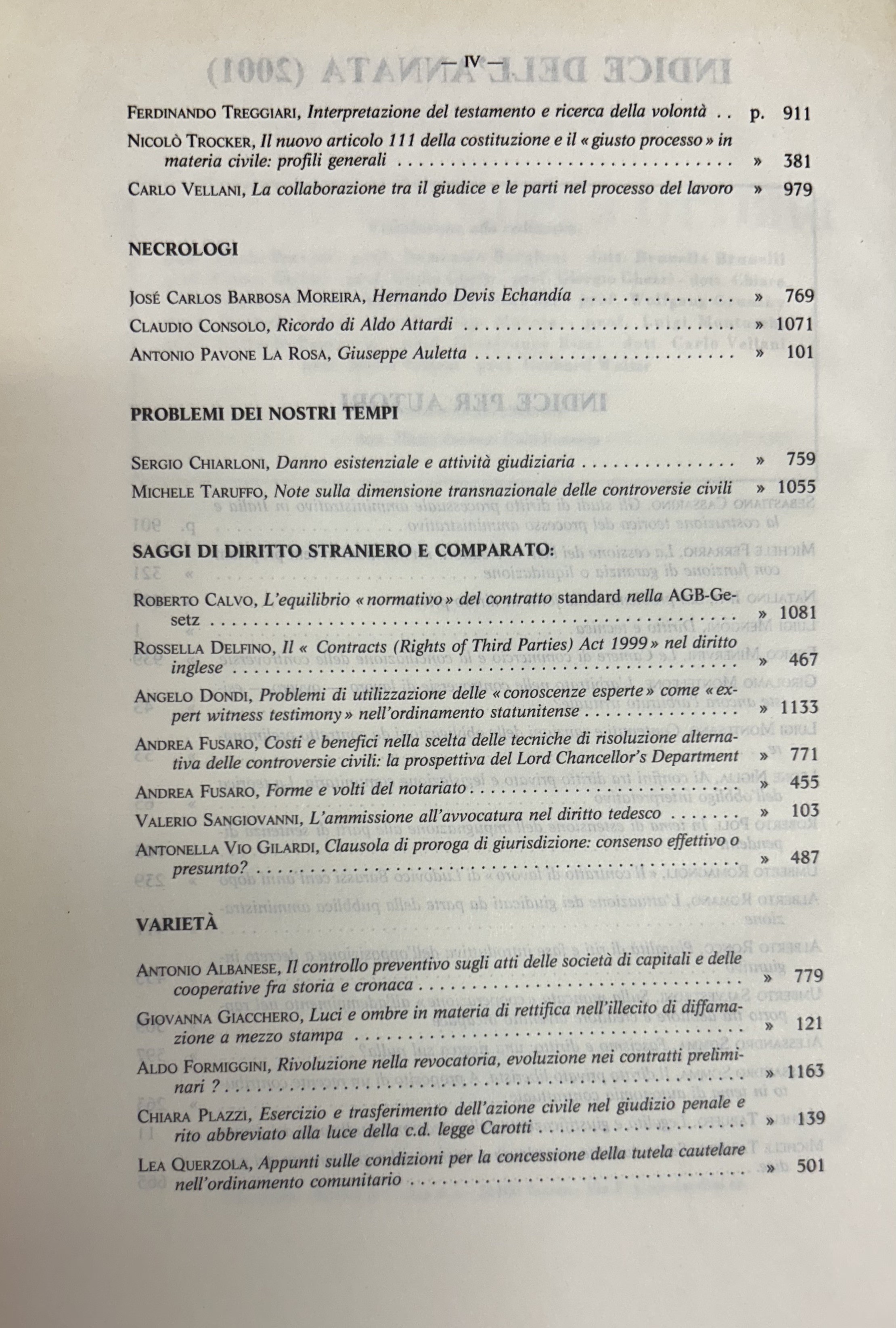 Bessone M. - Calvo R. - Cassarino S. - Chiarloni S. - Consolo C. - Dalmotto E. - Formiggini A. - Fusaro A. - Grossi P. - Irti N. - Mengoni L. - Minervini E. - Monteleone G. - Montesano L. - Pavone La Rosa A. - Romano A. - Ronco A. - Salvestroni U. - Taruffo M. - Trocker N. - Vellani C. - Verde G. et alii
