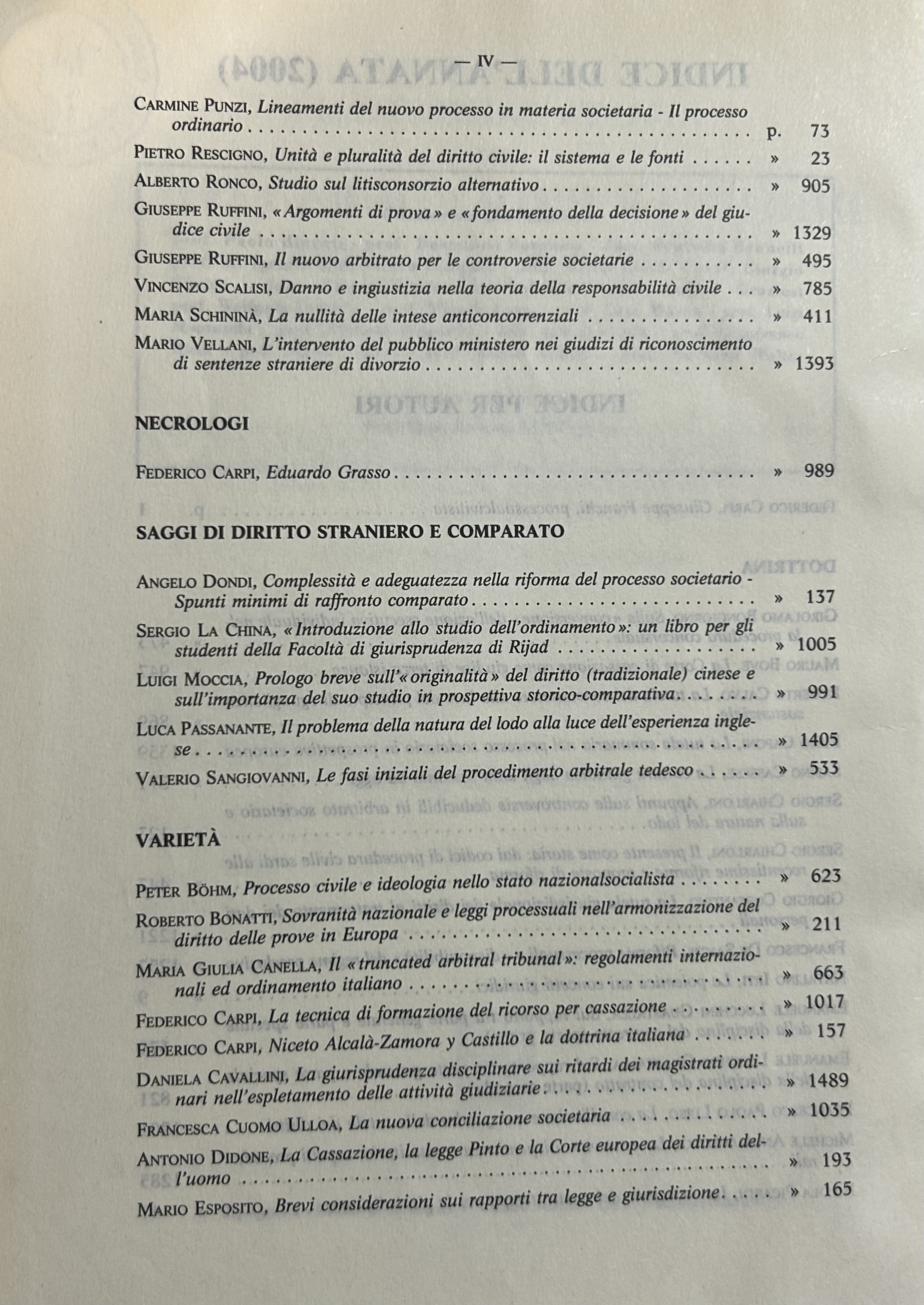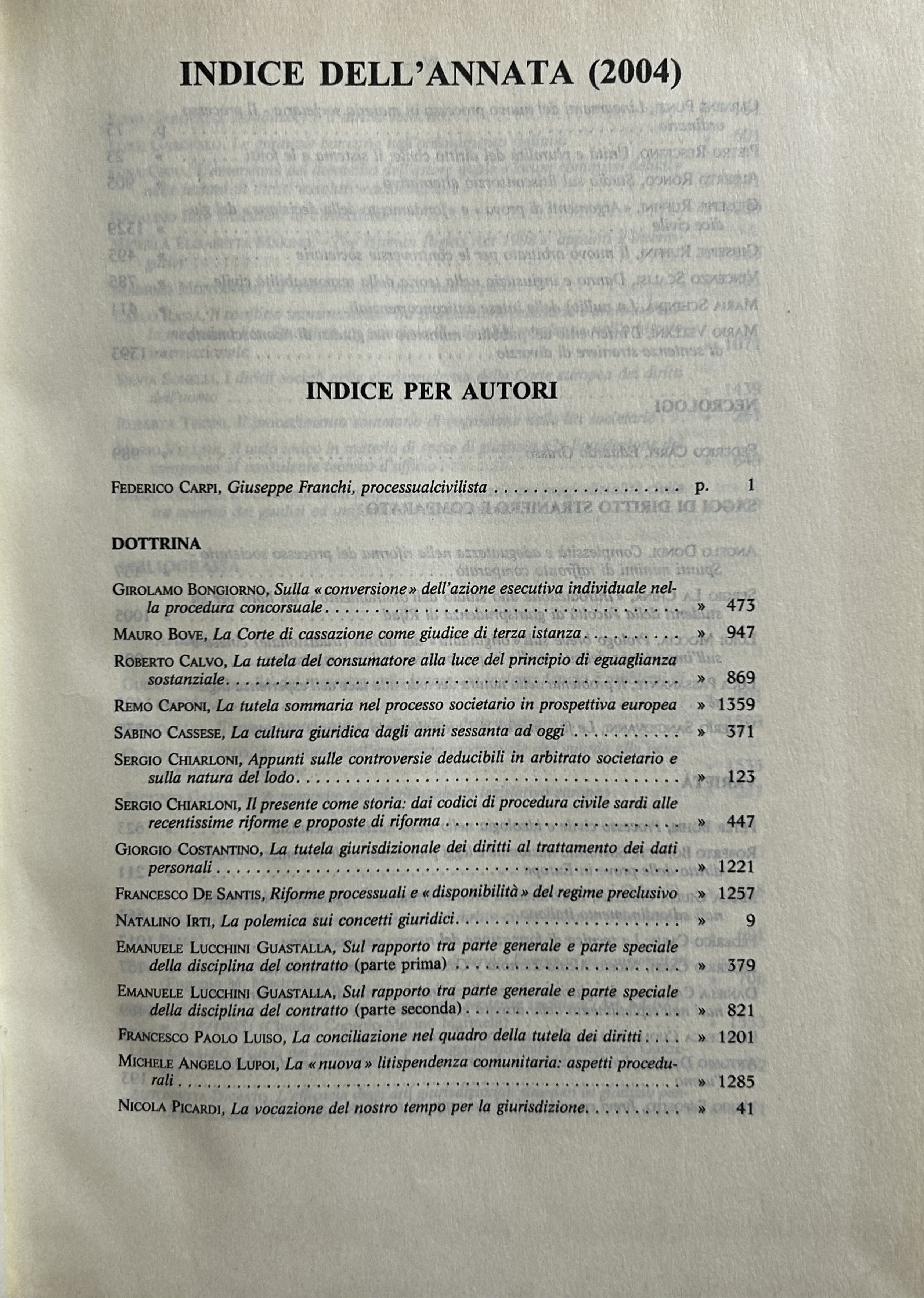 Bongiorno G. - Bove M. - Calvo R. - Caponi R. - Cassese S. - Chiarloni S. - Costantino G. - Irti N. - La China S. - Luiso F.P: - Lupoi M.A. - Passanante L. - Picardi N. - Punzi C. - Rescigno P. - Ronco A. - Ruffini G. - Vellani M. et alii