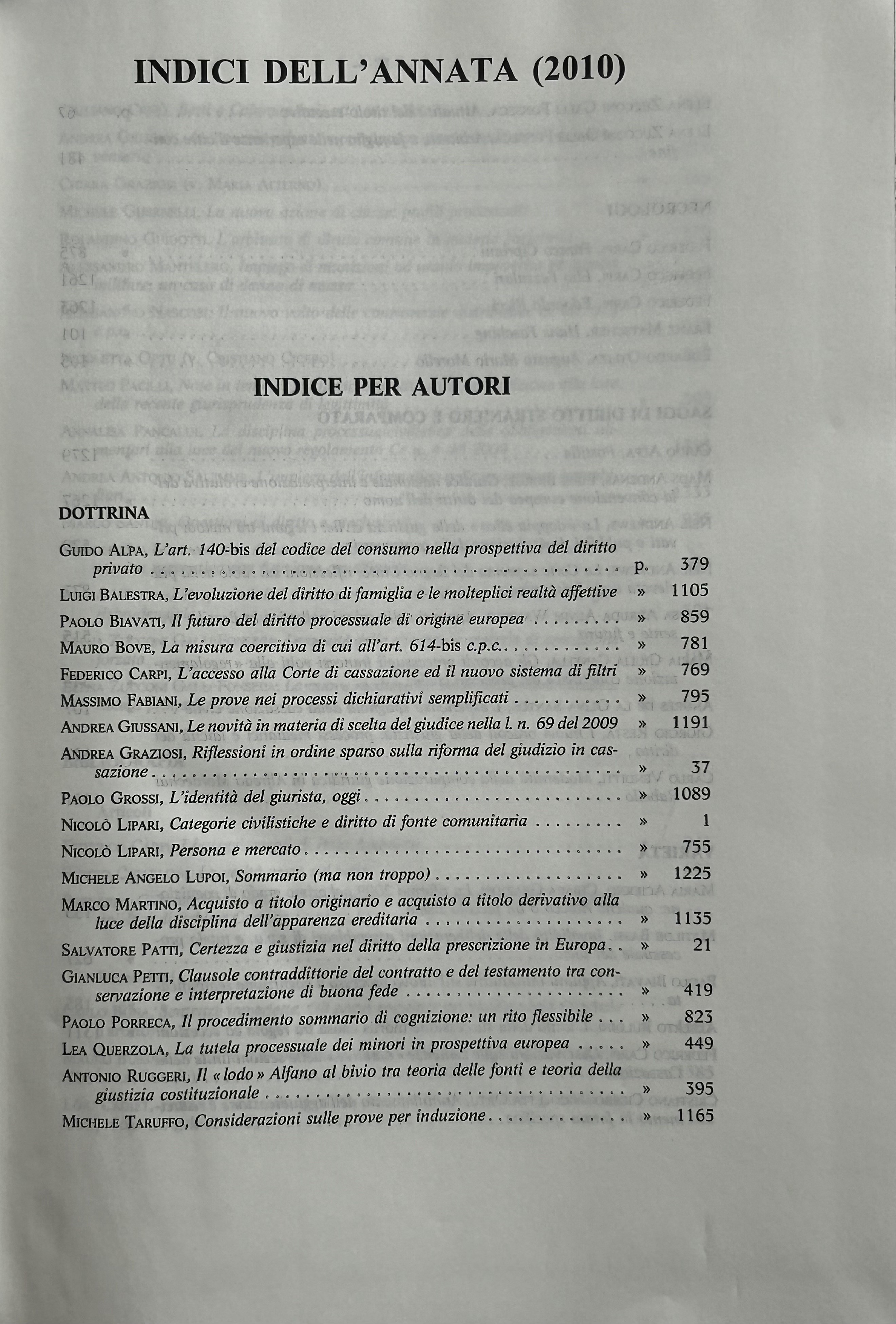 Alpa G. - Balestra L. - Biavati P. - Bove M. - Carpi F. - Grossi P. - Lipari N. - Lupoi M.A. - Patti S. - Taruffo M. et alii