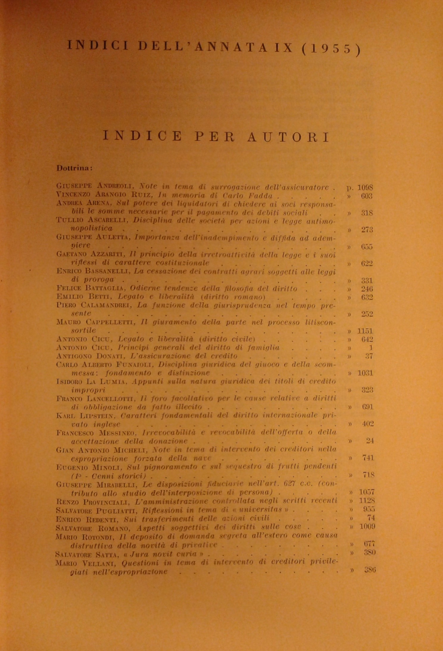 Rivista trimestrale di diritto e procedura civile. Fondata da: A. Cicu e E. Redenti. Diretta da: T. Ascarelli, G. Auletta, E. Bassanelli, T. Carnacini, S. Pugliatti, F. Santoro Passarelli, S. Satta, A. Segni. Anno IX - 1955