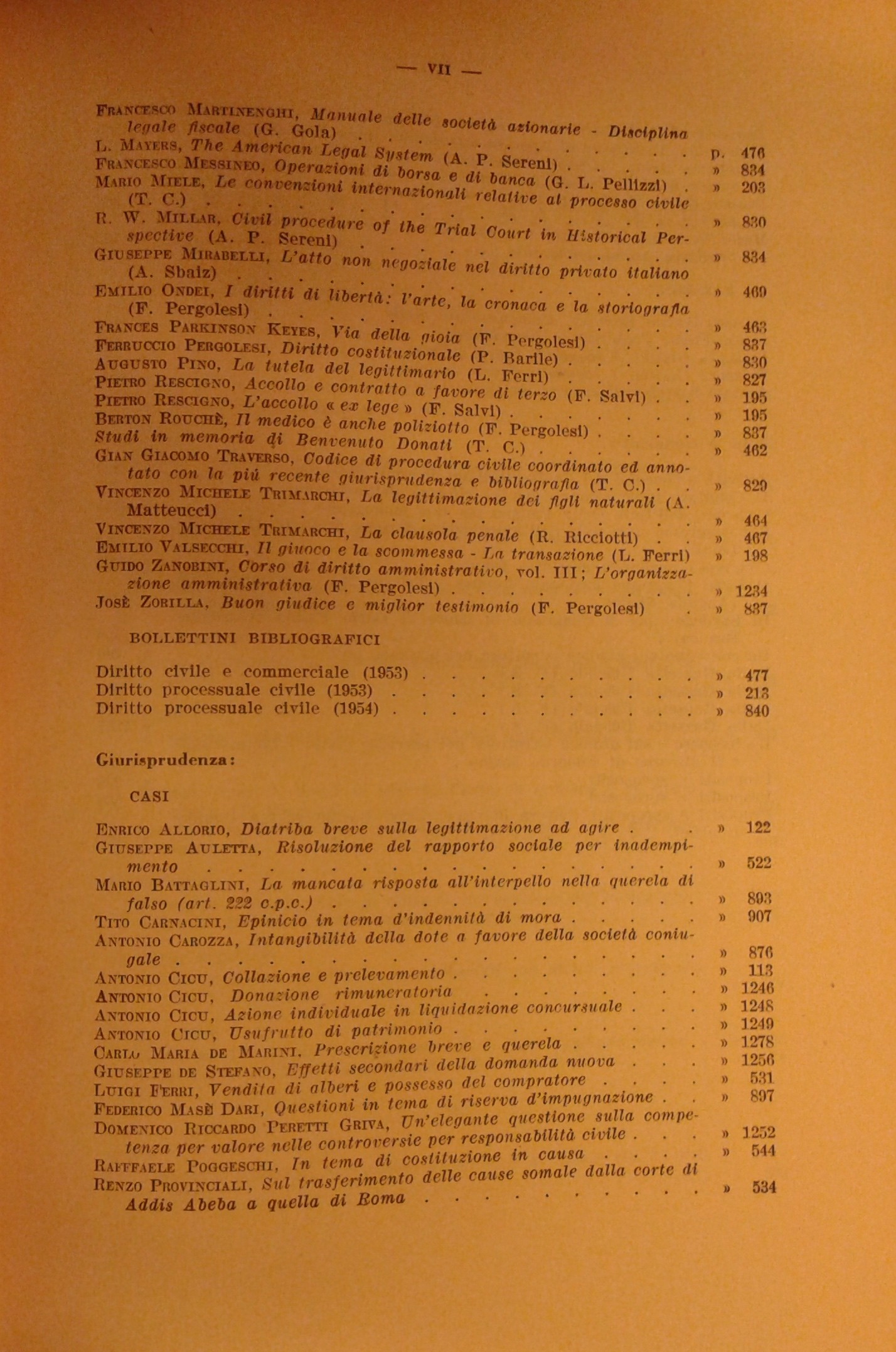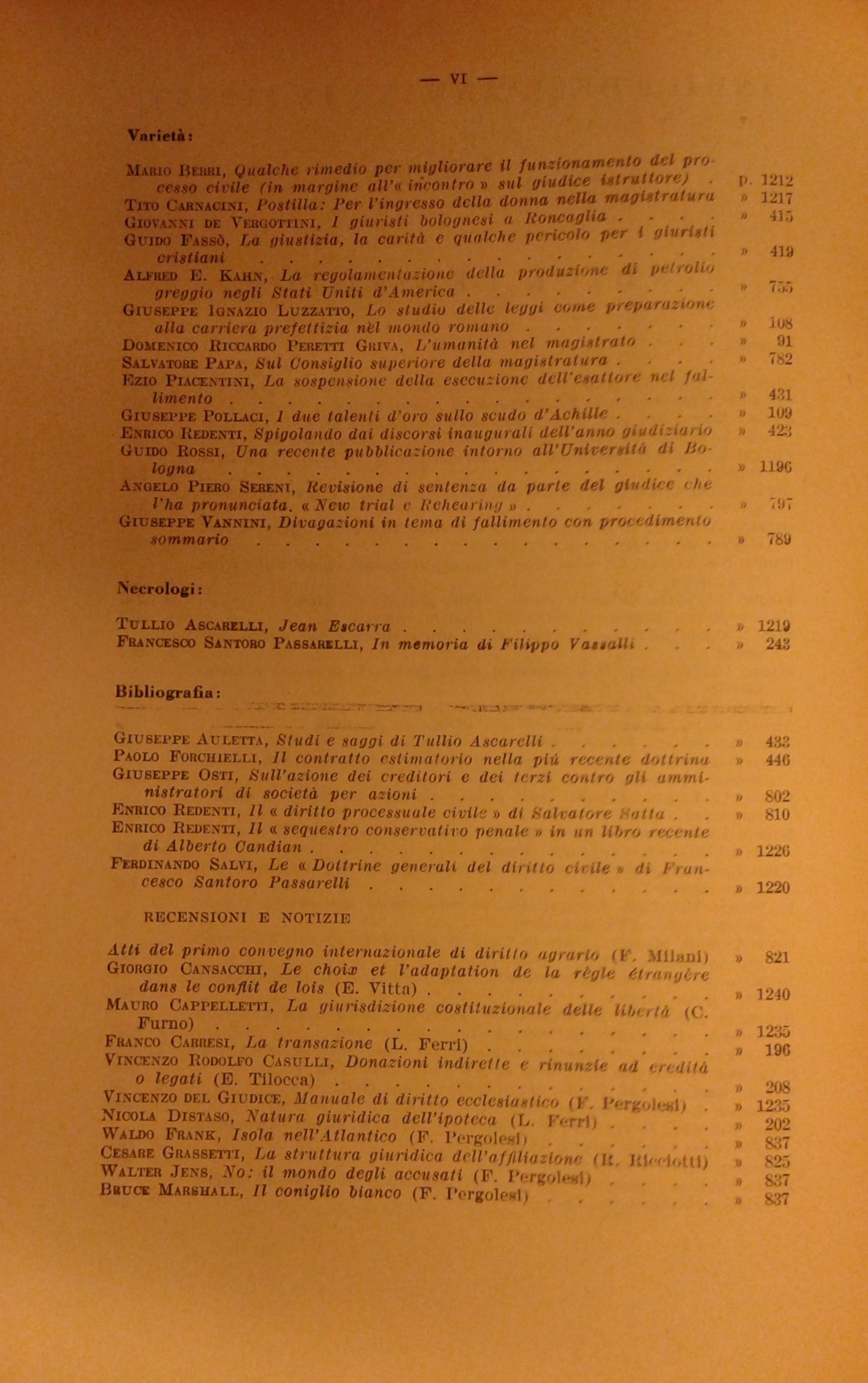 Ascarelli T. - Auletta G. - Bigiavi W. - Cicu A. - Giorgianni M. - Messineo F. - Pugliatti S. - Redenti E. - Santoro Passarelli F. - Satta S. et alii