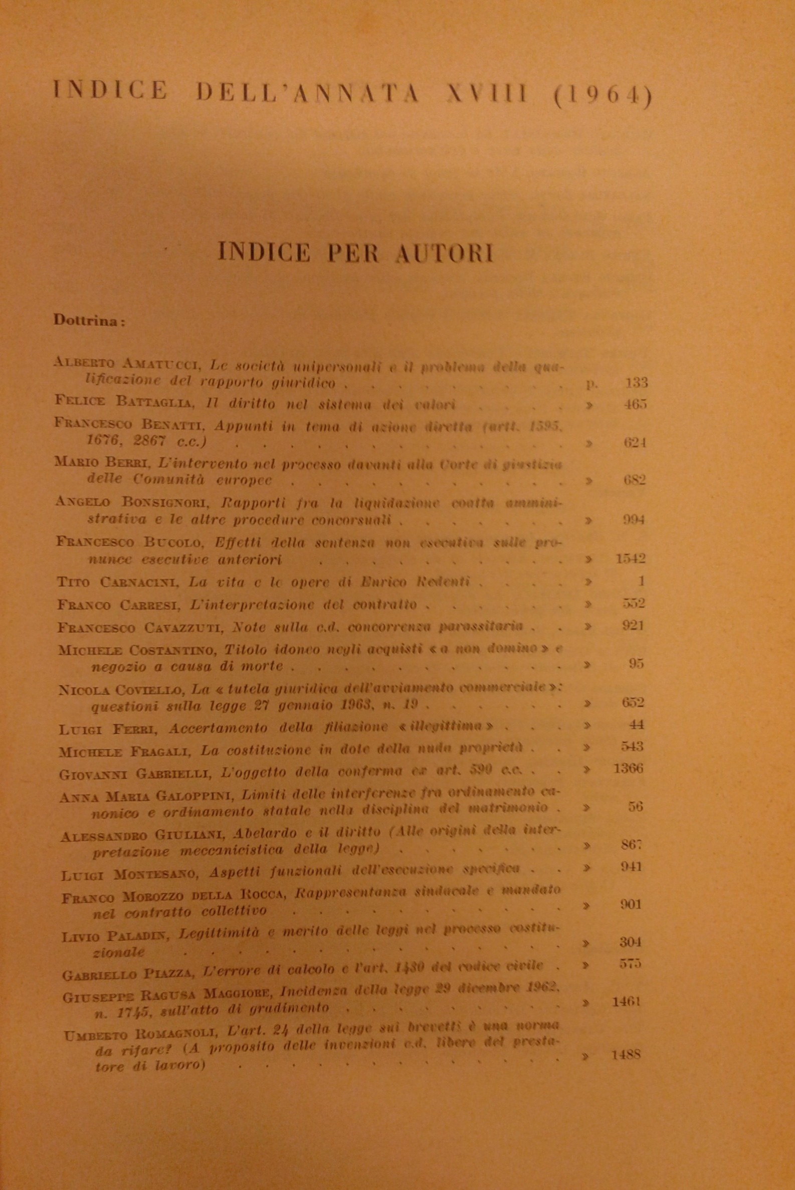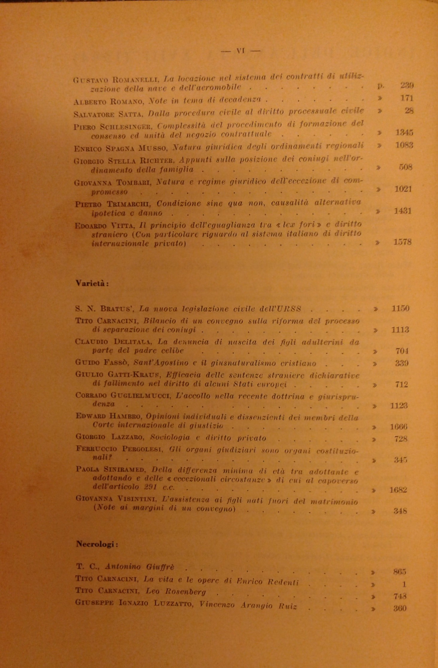 Auletta G. - Bigiavi W. - Cicu A. - Giorgianni M. - Messineo F. - Pugliatti S. - Redenti E. - Santoro Passarelli F. - Satta S. et alii