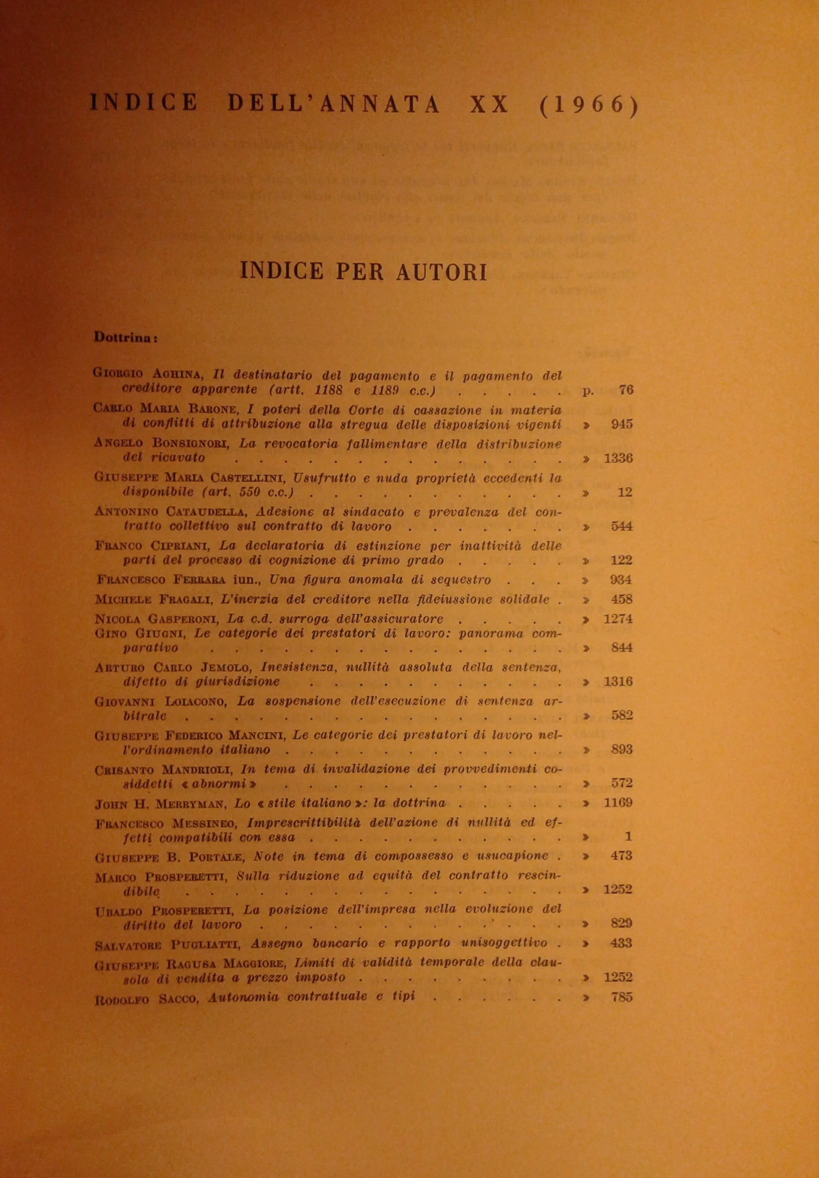 Rivista trimestrale di diritto e procedura civile. Fondata da: A. Cicu e E. Redenti. Diretta da: G. Auletta, E. Bassanelli, T. Carnacini, M. Giorgianni, F. Messineo, S. Pugliatti, F. Santoro Passarelli, S. Satta, A. Segni. Anno XX - 1966