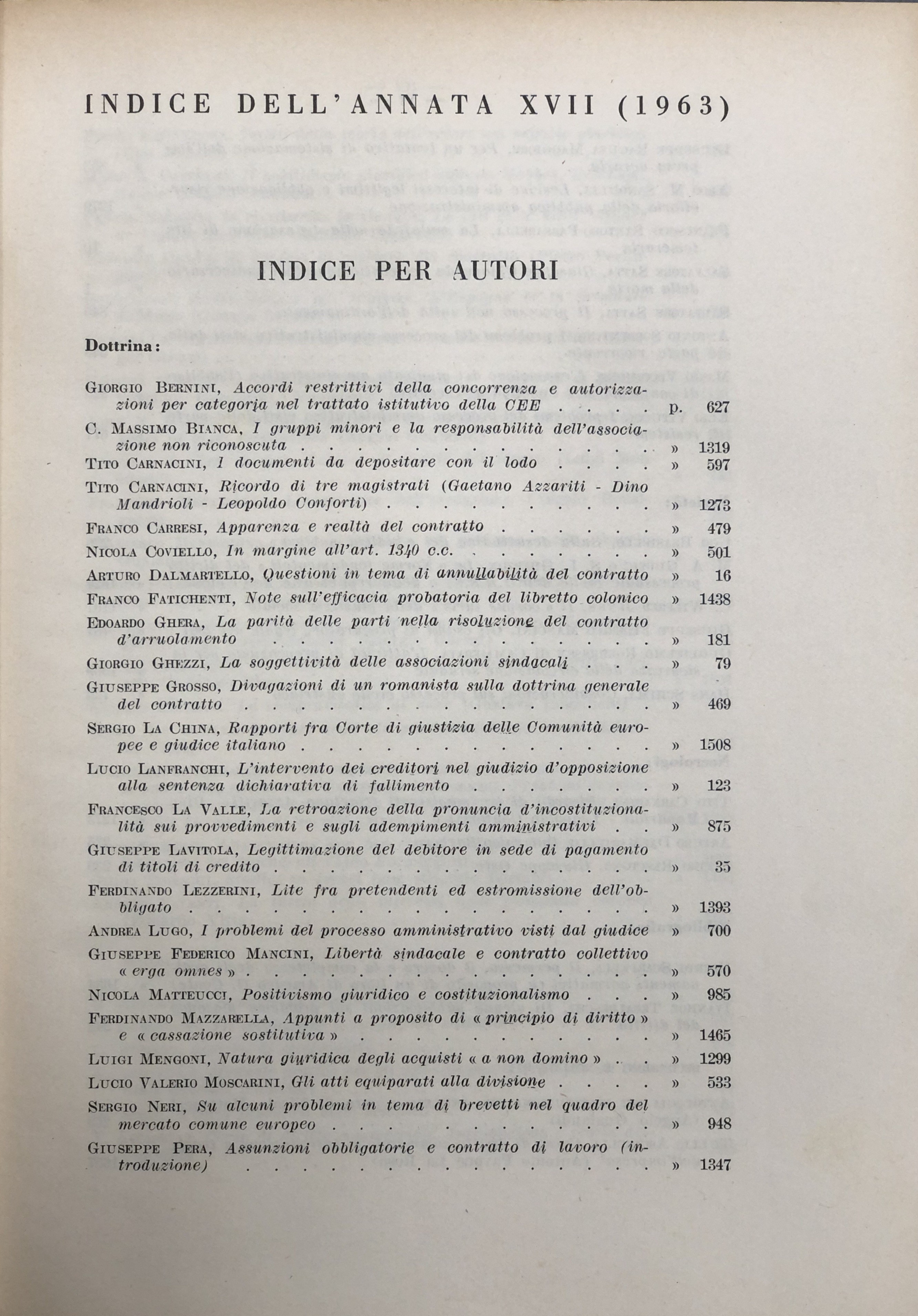 Rivista trimestrale di diritto e procedura civile. Fondata da: A. Cicu e E. Redenti. Diretta da: G. Auletta, E. Bassanelli, T. Carnacini, M. Giorgianni, F. Messineo, S. Pugliatti, F. Santoro Passarelli, S. Satta, A. Segni. Anno XVII - 1963