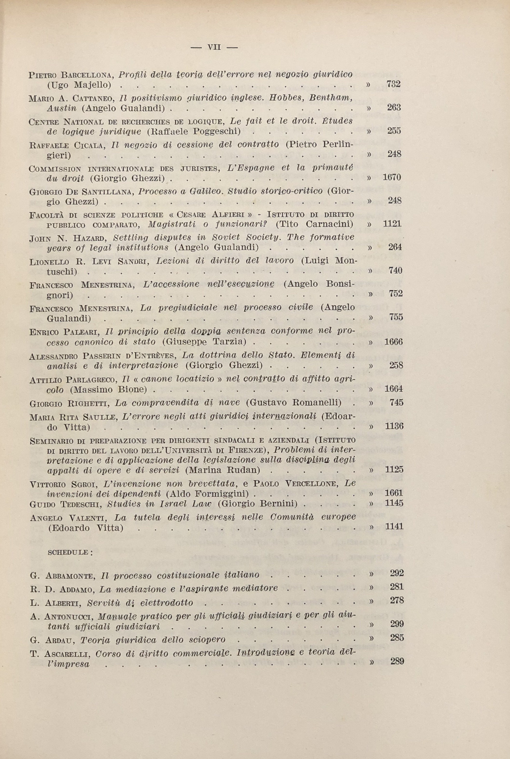 Auletta G. - Bigiavi W. - Cicu A. - Giorgianni M. - Messineo F. - Pugliatti S. - Redenti E. - Santoro Passarelli F. - Satta S. et alii