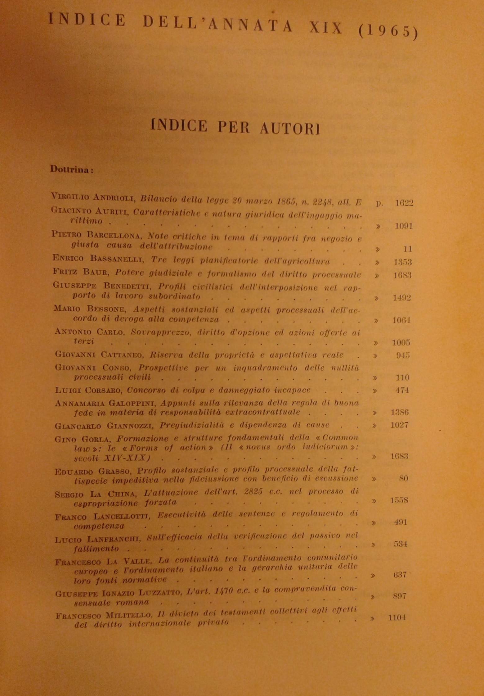 Rivista trimestrale di diritto e procedura civile. Fondata da: A. Cicu e E. Redenti. Diretta da: G. Auletta, E. Bassanelli, T. Carnacini, M. Giorgianni, F. Messineo, S. Pugliatti, F. Santoro Passarelli, S. Satta, A. Segni. Anno XIX - 1965