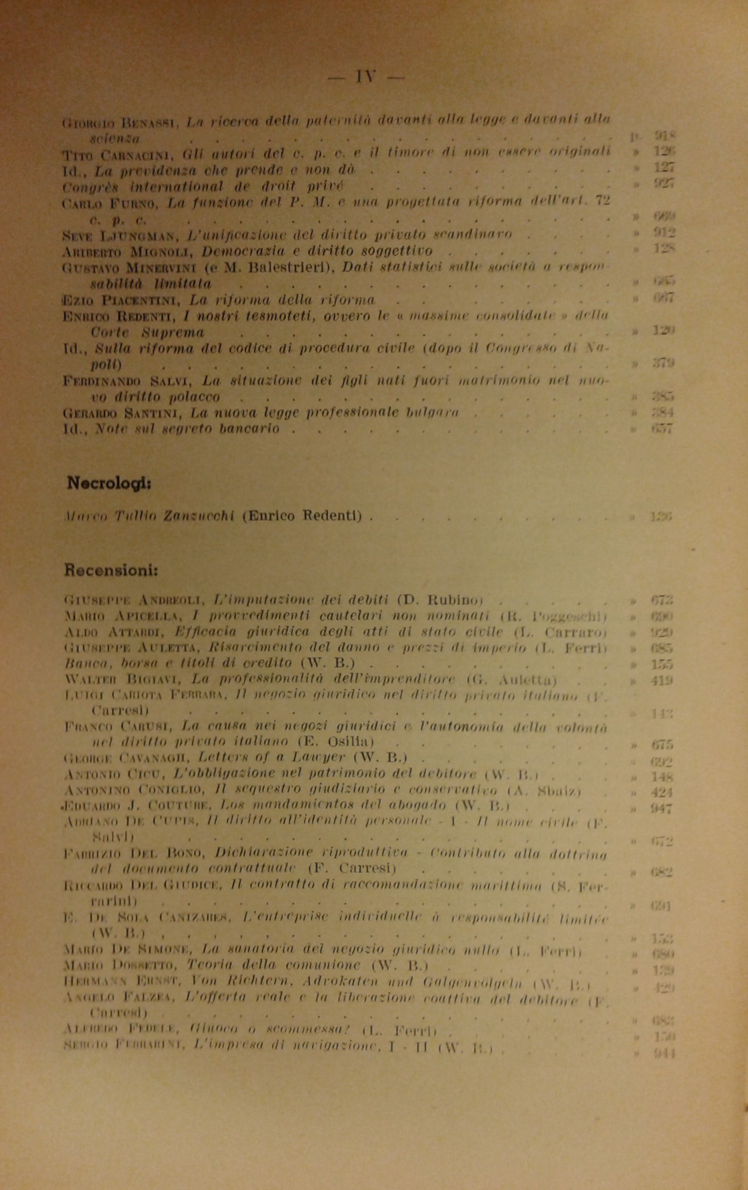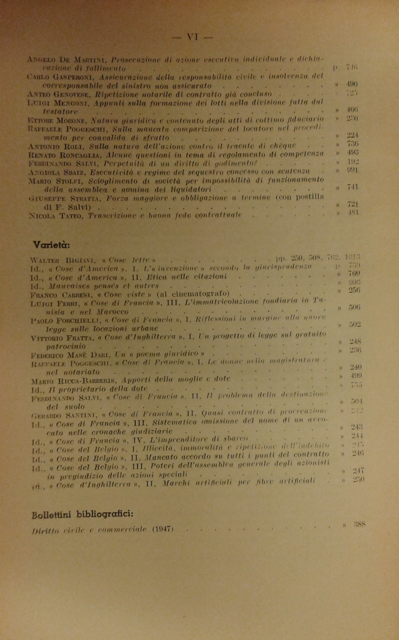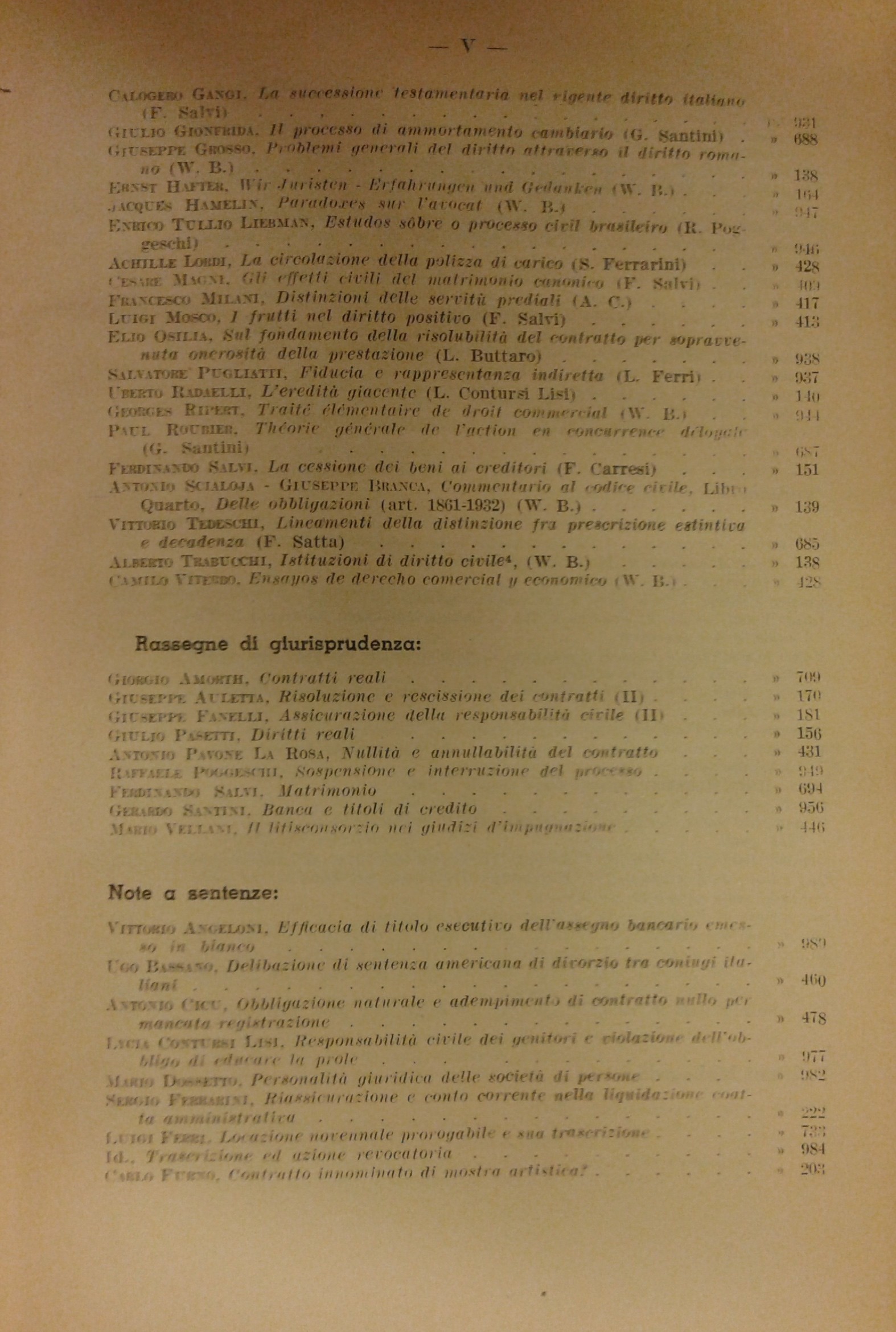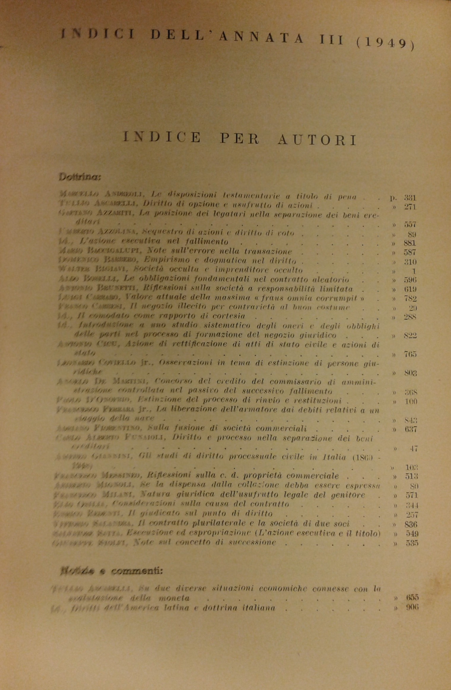 Andreoli M. - Ascarelli T. - Azzariti G. - Barbero D. - Bigiavi W. - Carraro L. - Carresi F. - Cicu A. - Coviello jr. L. - Funaioli C.A. - Messineo F. - Mignoli A. - Redenti E. - Satta S. - Stolfi G. et alii