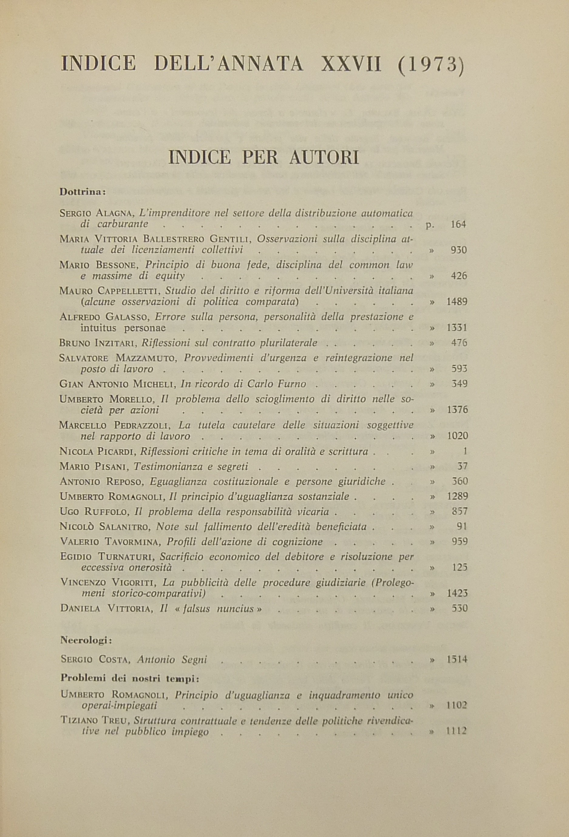 Rivista trimestrale di diritto e procedura civile. Fondata da: A. Cicu e E. Redenti. Diretta da: G. Auletta, E. Bassanelli, T. Carnacini, M. Giorgianni, F. Messineo, S. Pugliatti, F. Santoro Passarelli, S. Satta. Anno XXVII - 1973