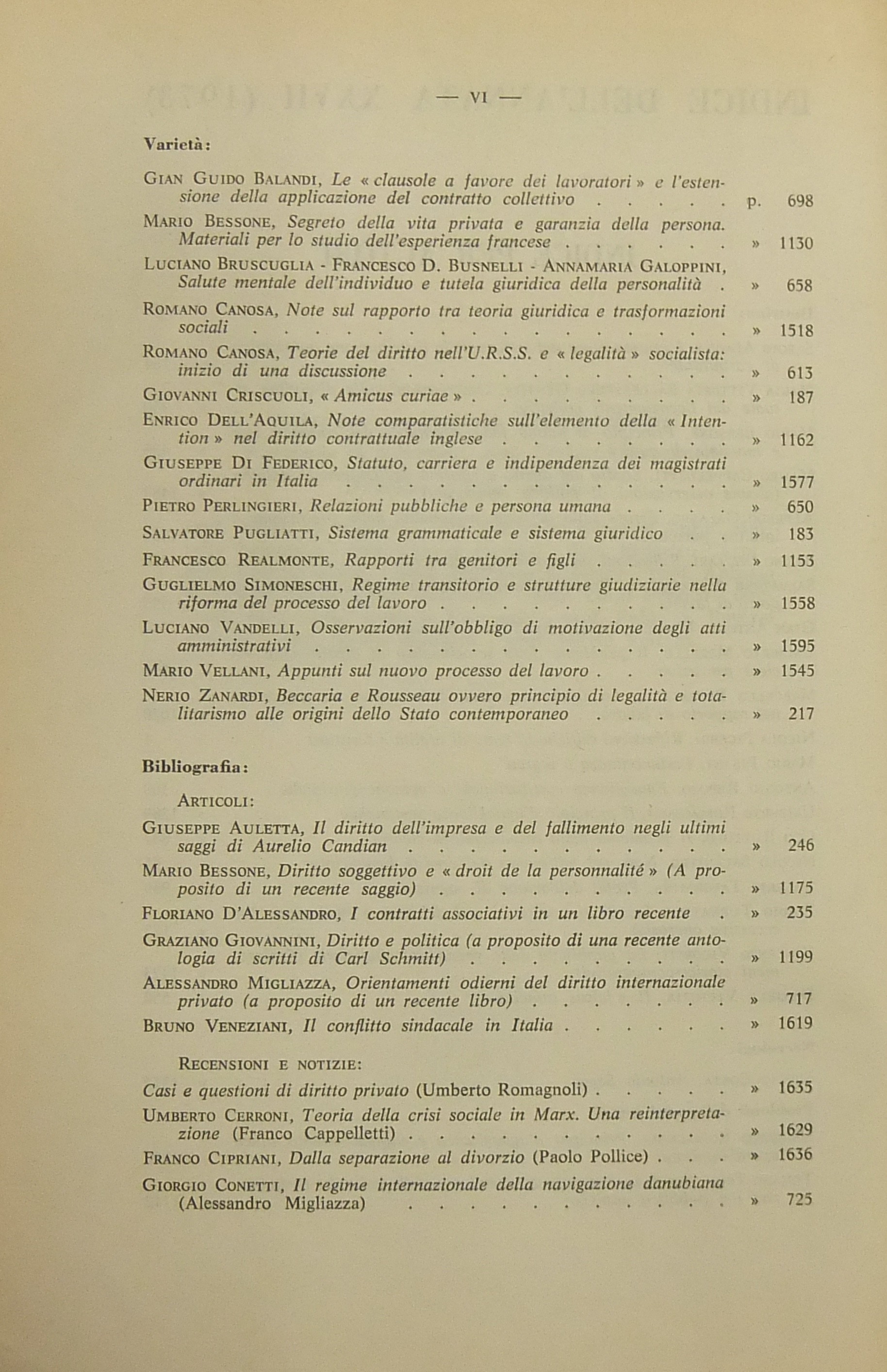 Auletta G. - Bigiavi W. - Cicu A. - Giorgianni M. - Messineo F. - Pugliatti S. - Redenti E. - Santoro Passarelli F. - Satta S. et alii