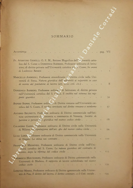 Scritti di: Andreoli, Barbero, Biondi, Brunetti, Gangi, A. Gemelli, Lordi, Messineo, Montessori, Mossa, Pergolesi, Riva Sanseverino, Roberti, Santoro Passarelli, Valeri.