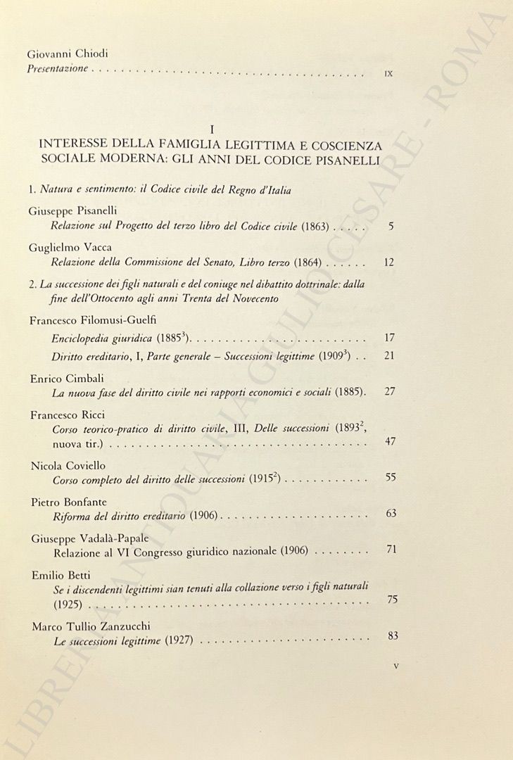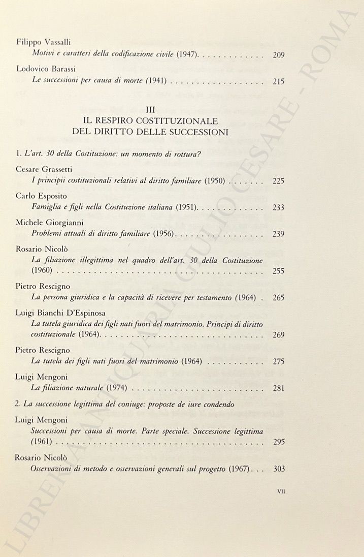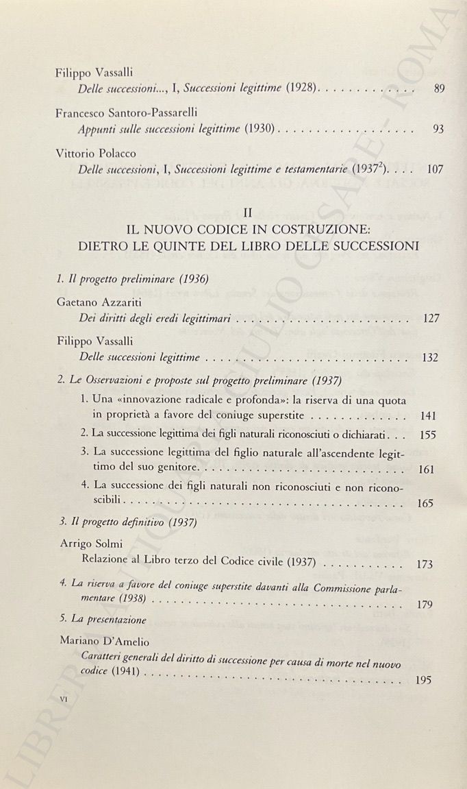 Scritti di: Azzariti, Barassi, Betti, Bianchi D’Espinosa, Bonfante, Cimbali, Coviello, D’Amelio, Esposito, Filomusi Guelfi, Giorgianni, Grassetti, Mengoni, Nicolò, Pisanelli, Polacco, Rescigno, Ricci, Santoro Passarelli, Solmi, Trabucchi, Vacca, Vadalà Papale, Vassalli, Zanzucchi