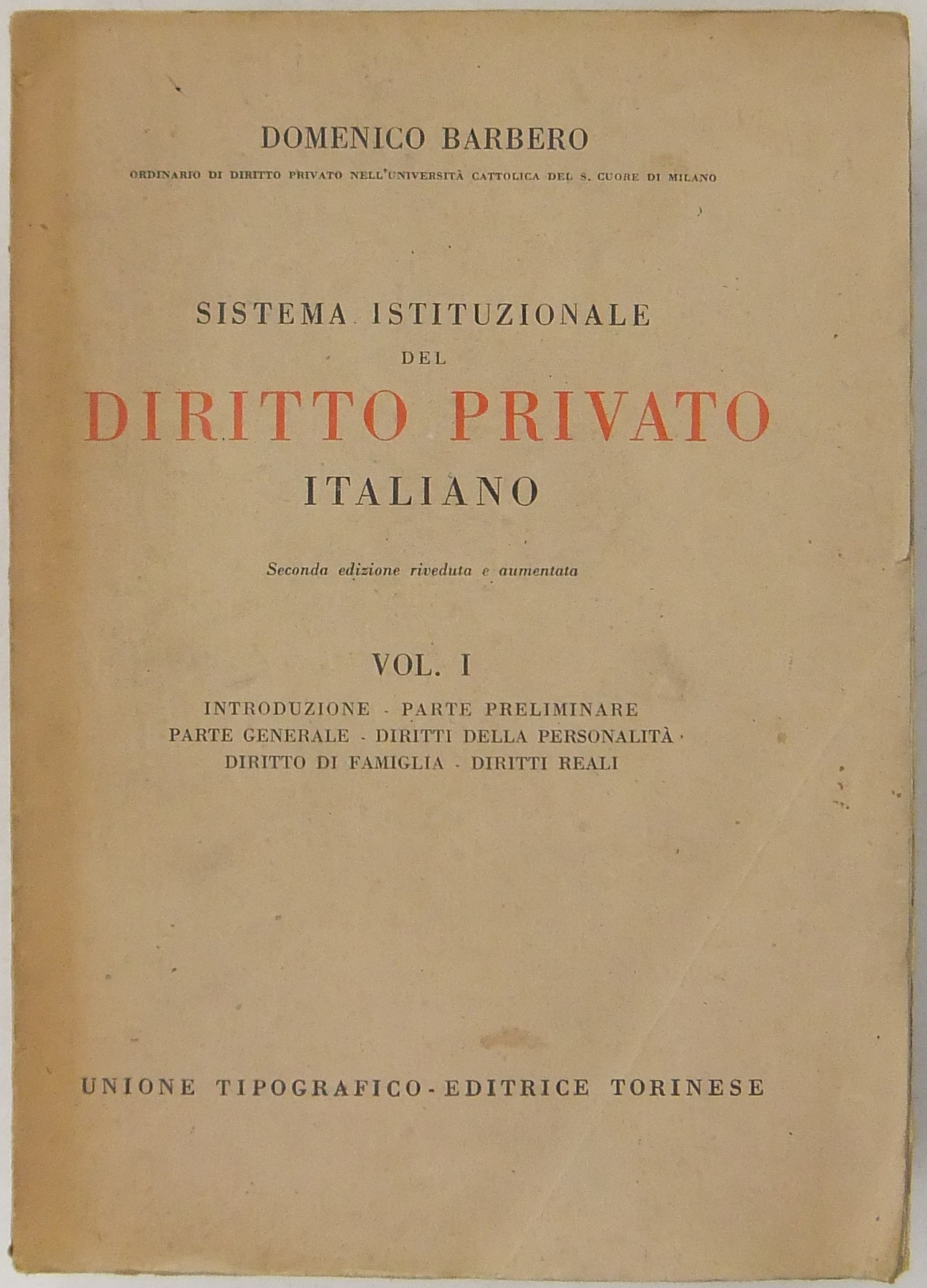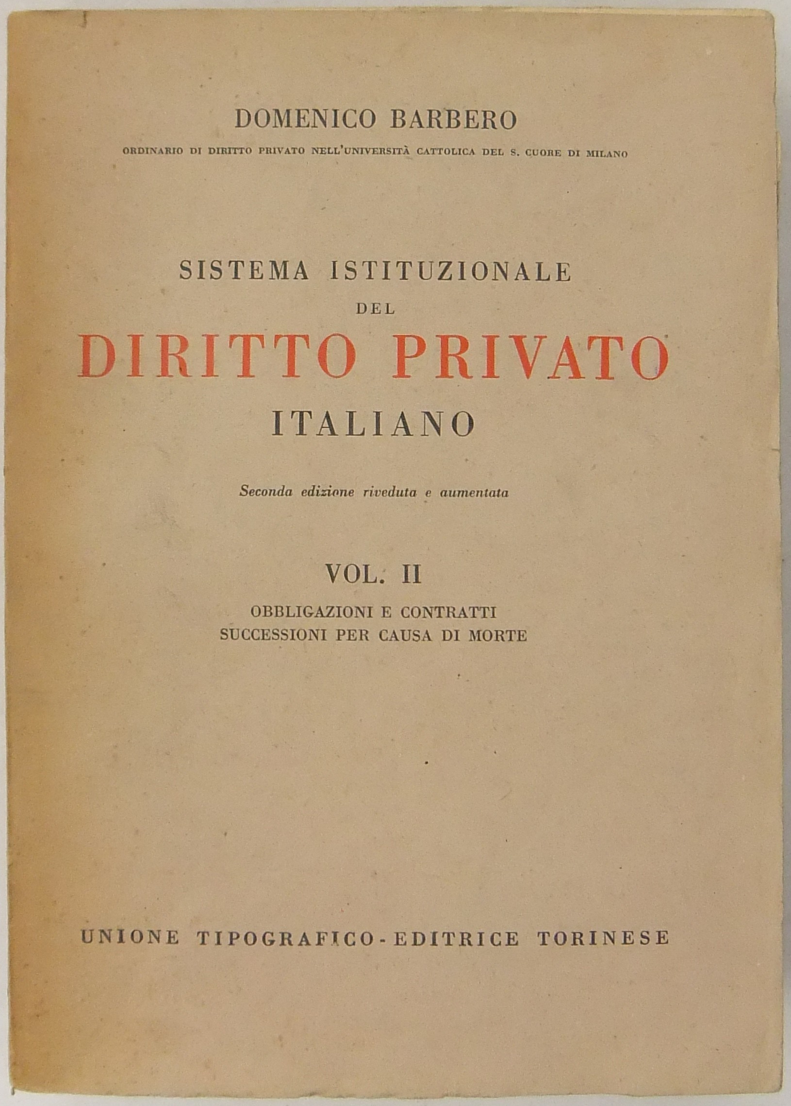 Sistema istituzionale del diritto privato italiano. Vol. I - Introduzione. Parte preliminare. Parte generale. Diritti della personalità . Diritto di famiglia. Diritti reali. Vol. II - Obbligazioni e contratti. Successioni per causa di morte