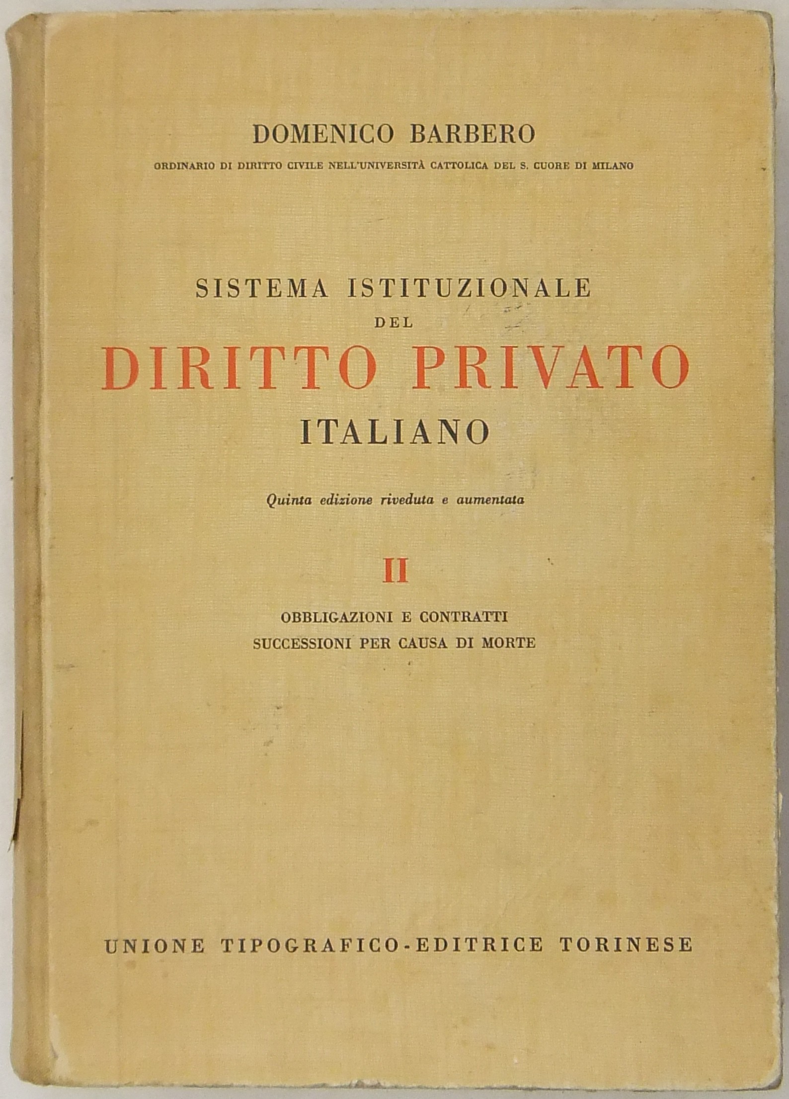 Sistema istituzionale del diritto privato italiano. Vol. I - Introduzione. Parte preliminare. Parte generale. Diritti della personalità . Diritto di famiglia. Diritti reali. Vol. II - Obbligazioni e contratti. Successioni per causa di morte