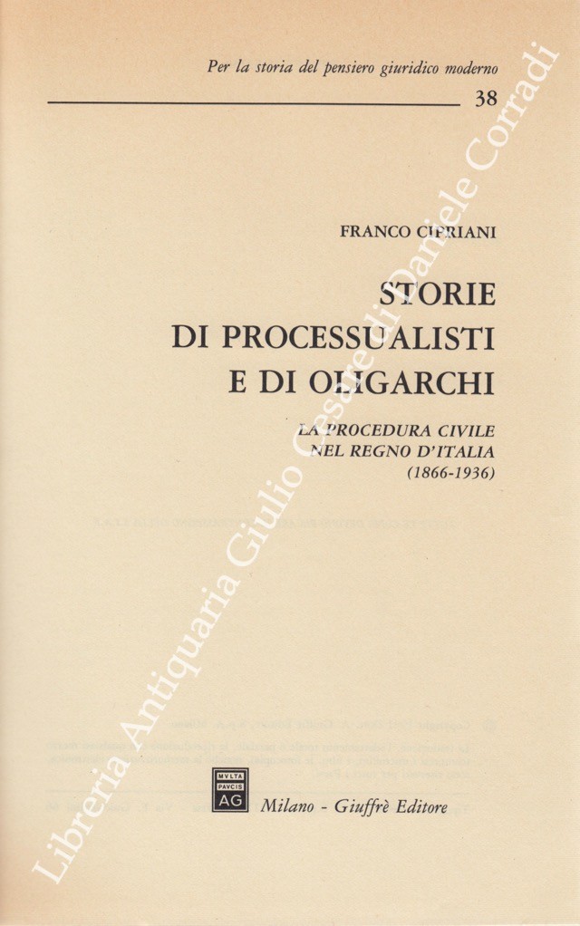 Storie di processualisti e di oligarchi. La procedura civile nel Regno d'Italia (1866-1936)