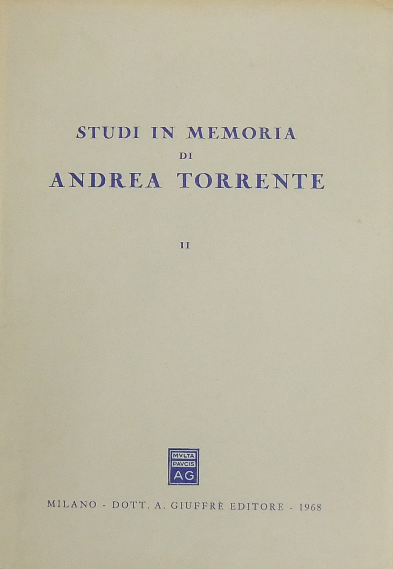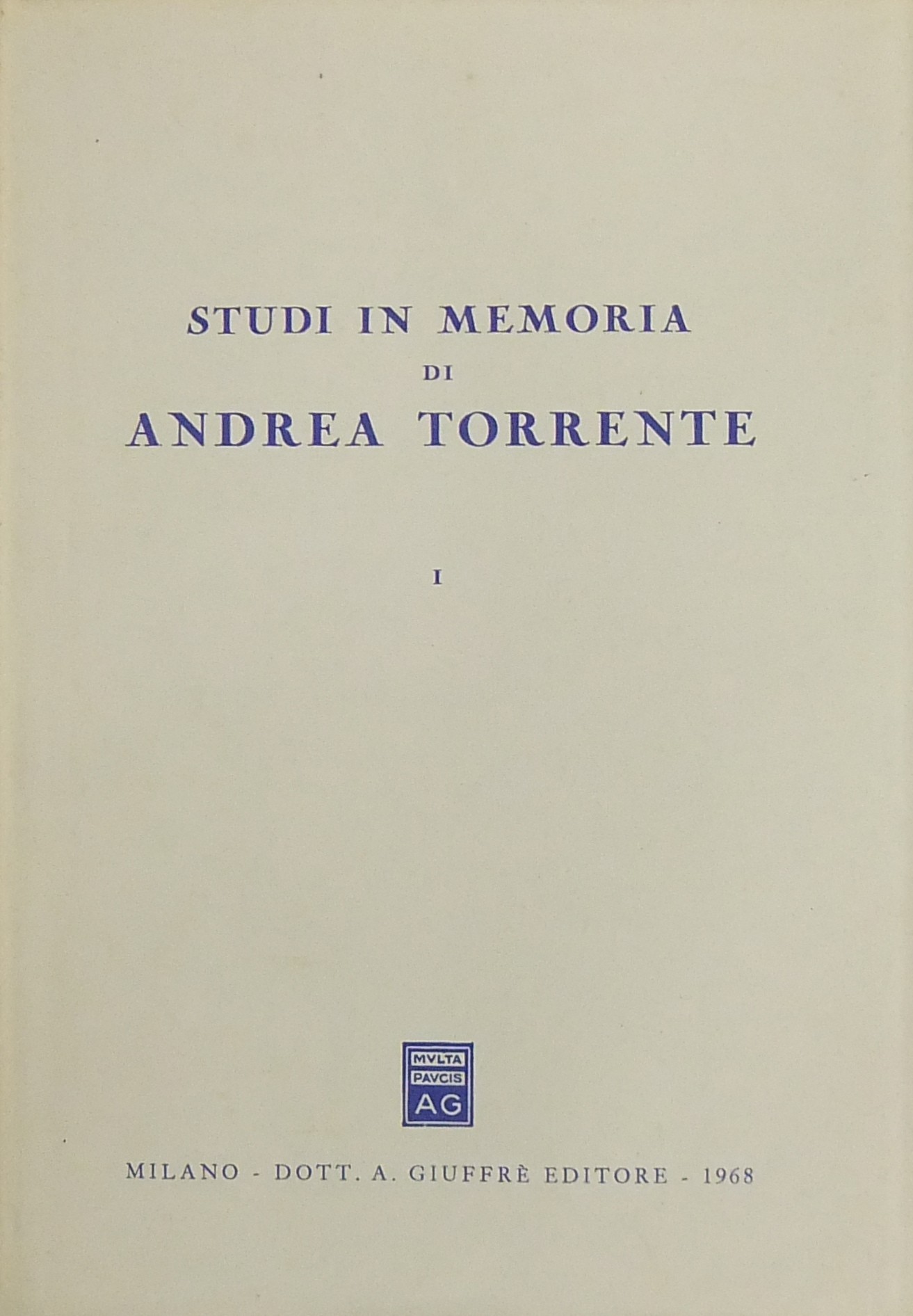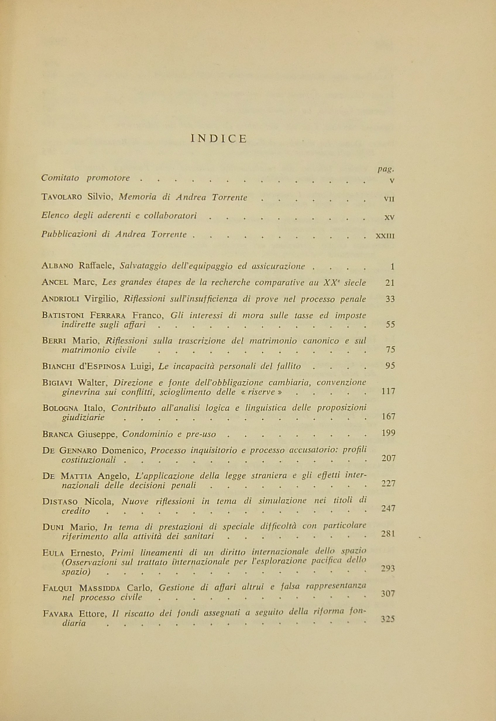 Ritratto fotografico di Torrente all’inizio del primo volume. Scritti di: Albano, Ancel, Andrioli, Batistoni Ferrara, Berri, Bianchi d’Espinosa, Bigiavi, Bologna, Branca, De Gennaro, De Mattia, Distaso, Duni, Eula, Falqui, Favara, Fazzalari, Flore, G. Foschini, Fragali, Gaeta, Geri, Giannattasio, V.Gianturco, Gionfrida, M. Giorgianni, Gorla, Landi, La Torre, Lazzaro, Loschiavo, Mancini, Marchetti, Messineo, Micheli, Mirabelli, Montesano, Natoli, Nigro, Oggioni, Pece, Pera, G.Pescatore, Piccardi, Pizzorusso, Rossano, Ruperto, Sammarco, A.M.Sandulli, Santoro Passarelli, S.Satta, Scarpello, Schermi, Scognamiglio, Sgroi, Sorrentino, M. Stella Richter, G.Stolfi, Tamburrino, Tavolaro, Vitucci, Zucconi Galli Fonseca.