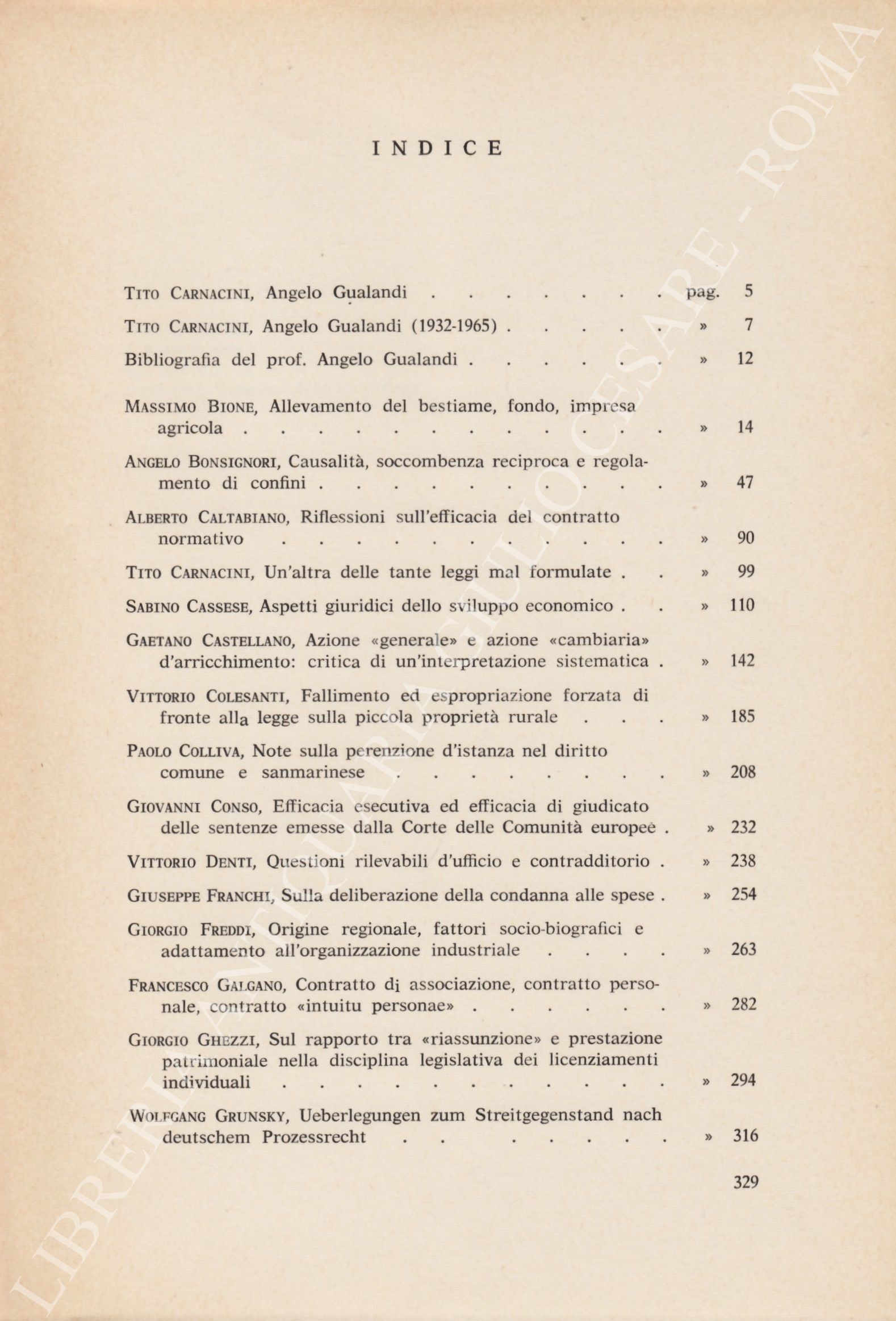 Scritti di: Bione, Bonsignori, Caltabiano, Carnacini, Cassese, Castellano, Colesanti, Colliva, Conso, Denti, Franchi, Freddi, Galgano, Ghezzi, Grunsky
