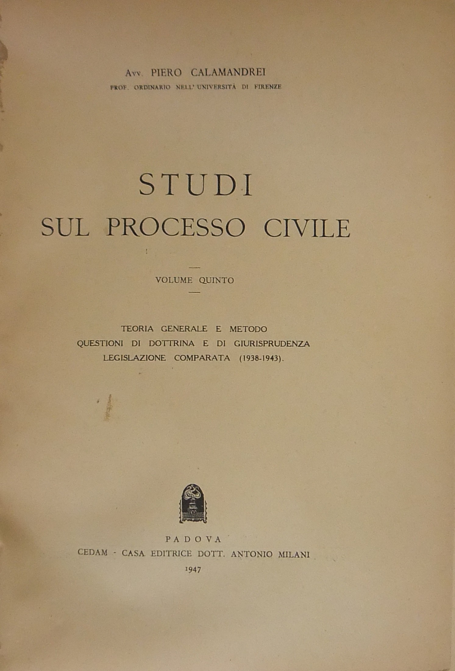 Studi sul processo civile. Volume Quinto - Teoria generale e metodo. Questioni di dottrina e di giurisprudenza. Legislazione comparata (1938-1943)