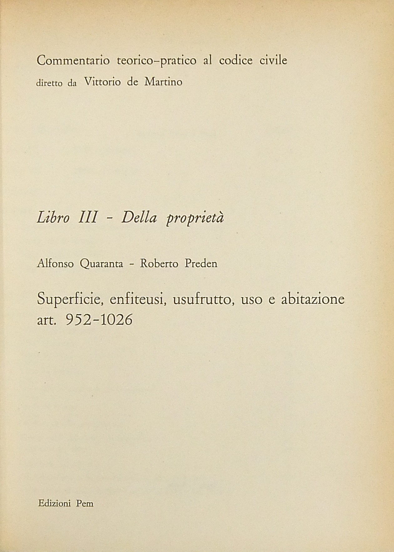 Superficie, enfiteusi, usufrutto, uso e abitazione. Art. 952-1026