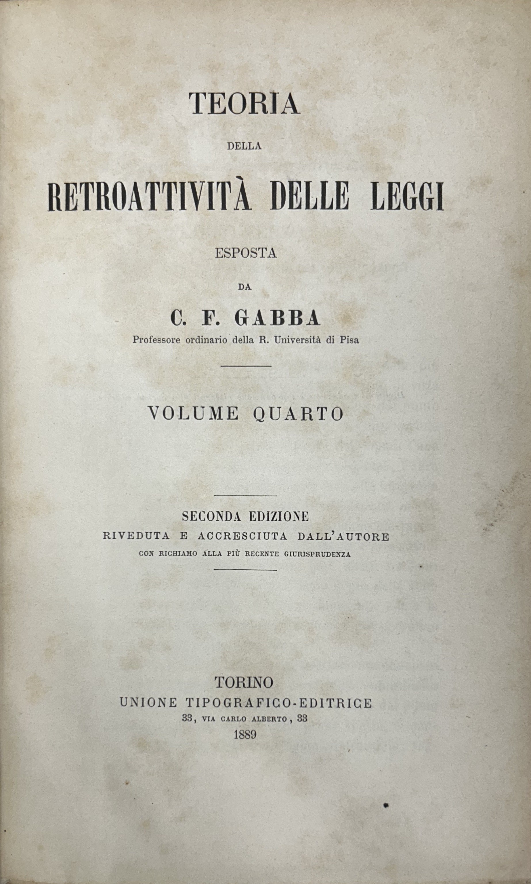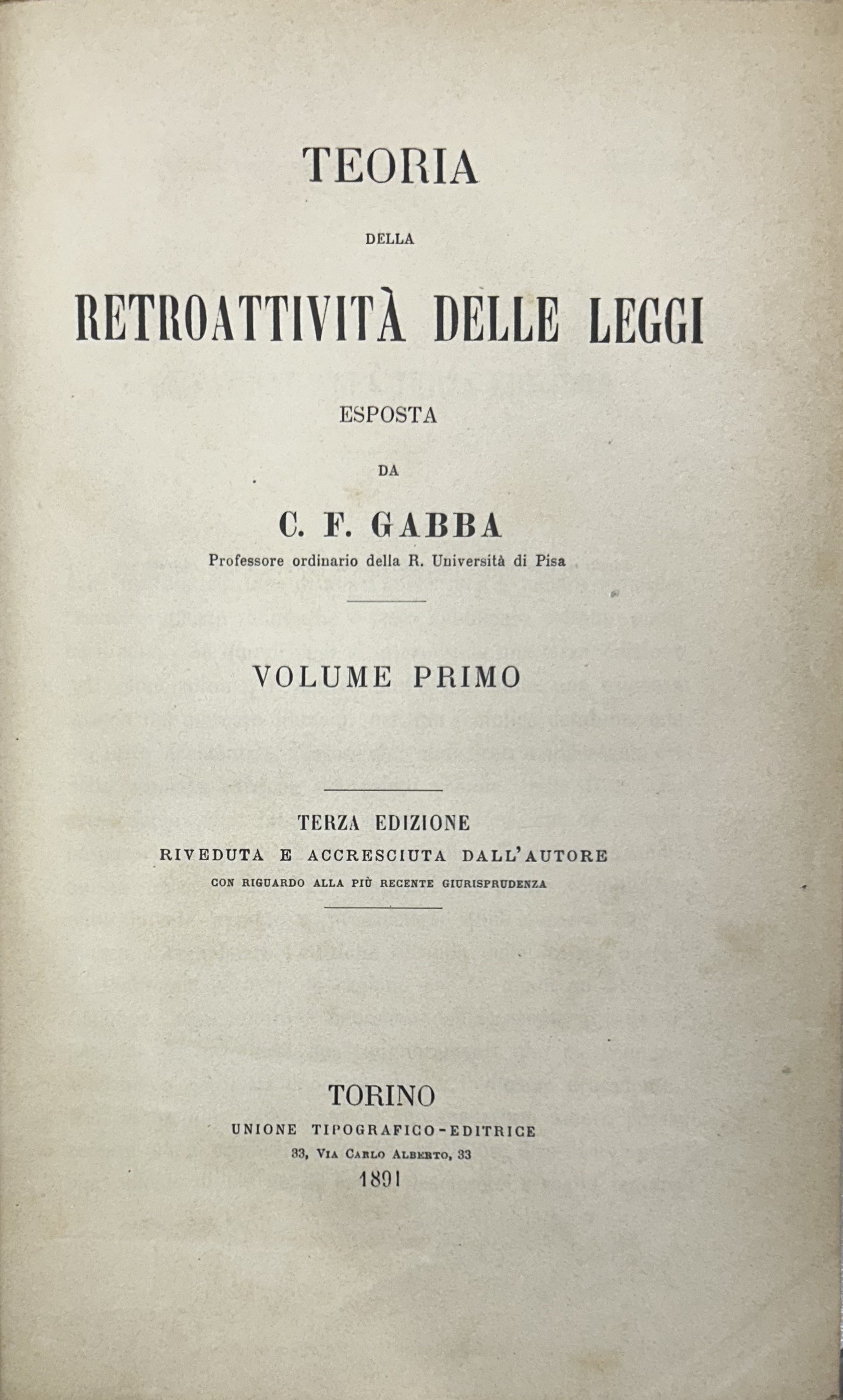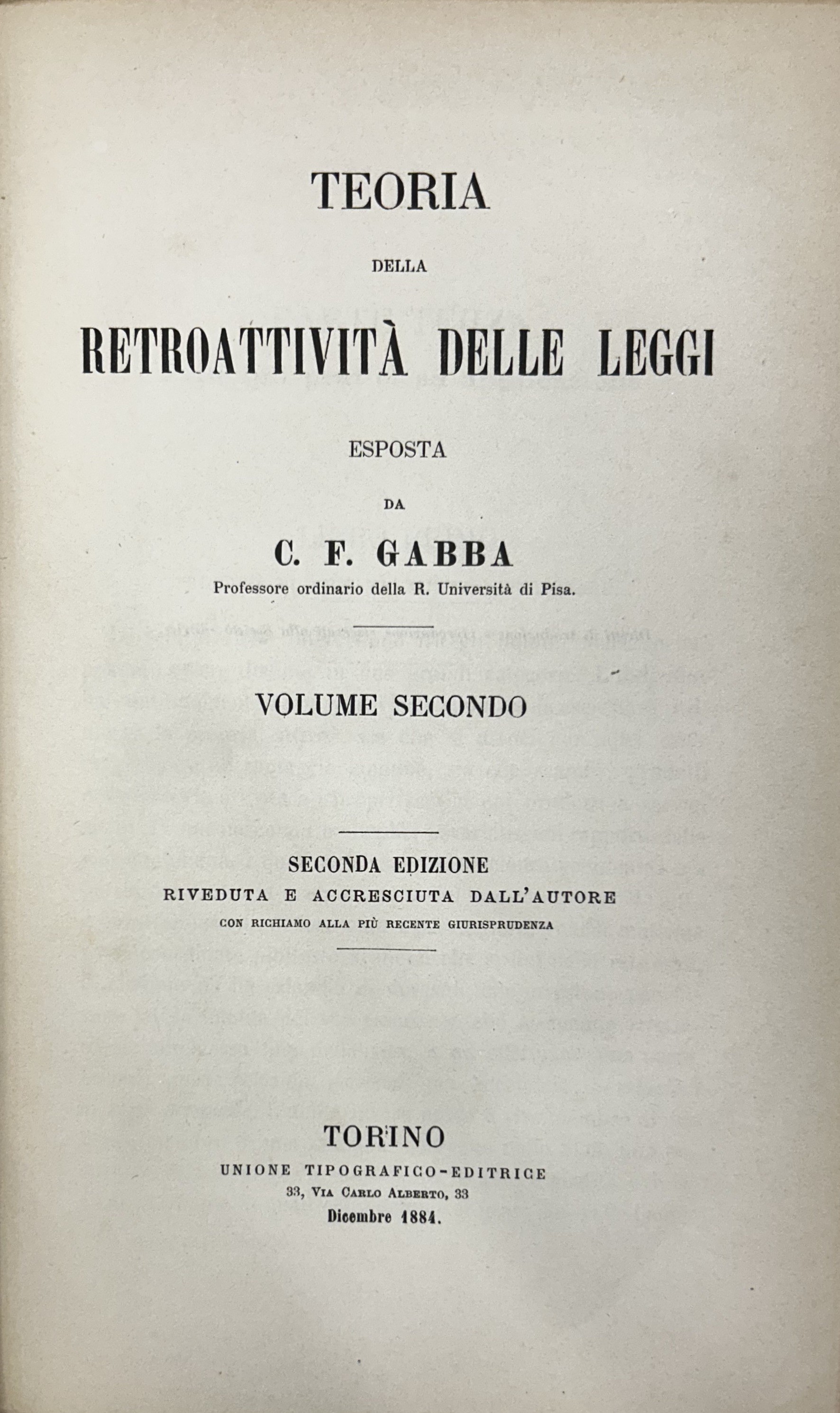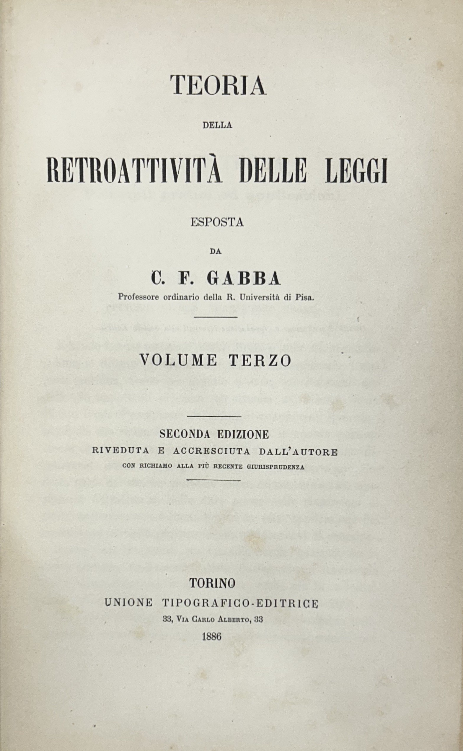 E’ l’opera principale del Gabba nella quale perfezionò la dottrina del Lassalle circa i diritti quesiti ed è considerata fondamentale in questo campo.
