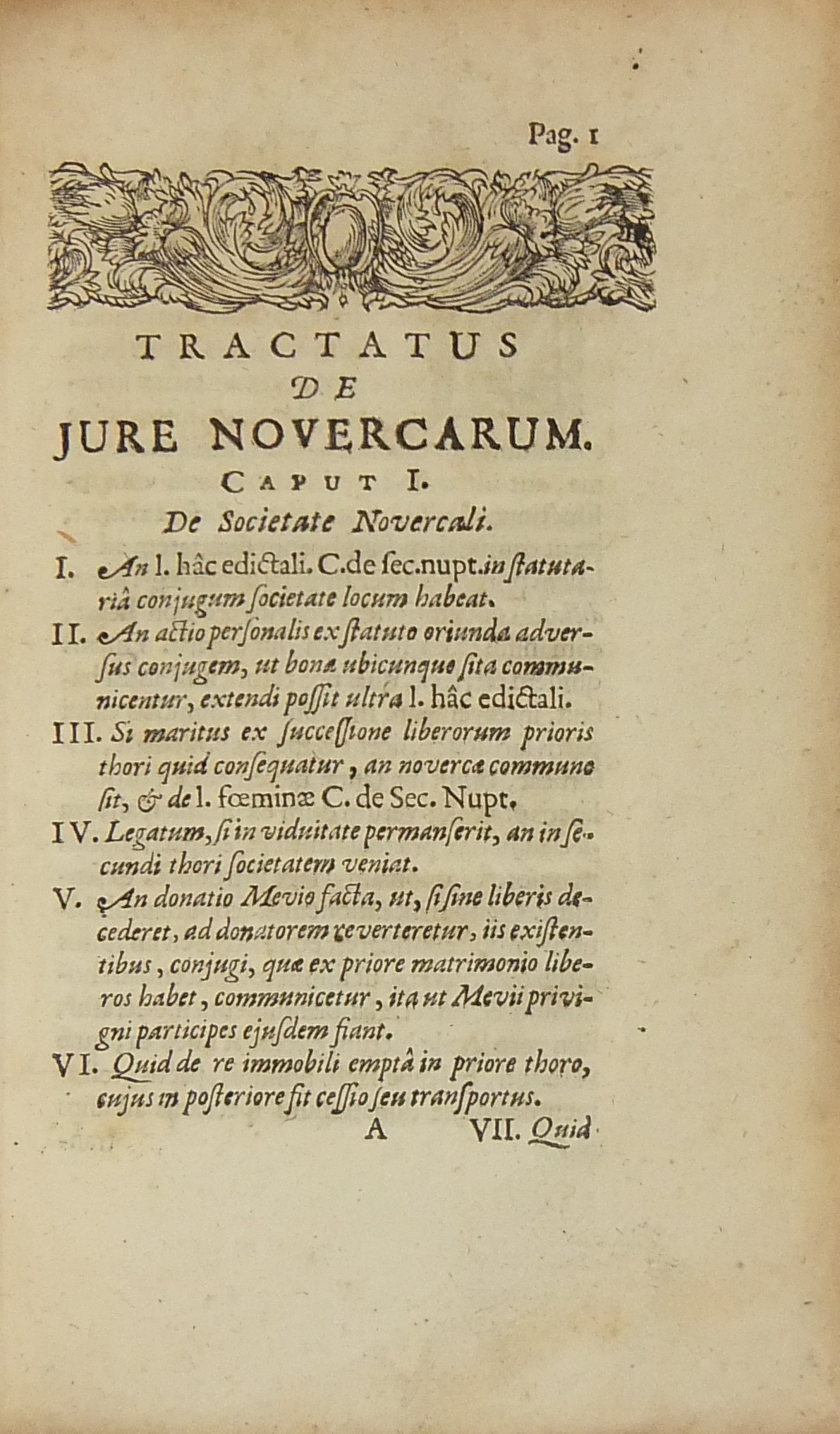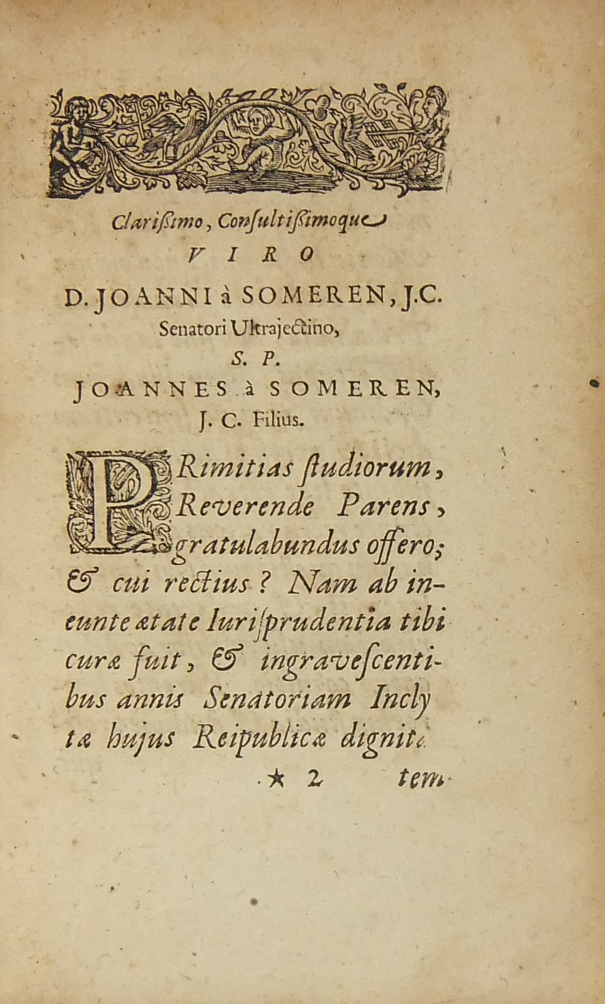 Frontespizio rosso e nero con bellissima marca tipografica raffigurante Minerva Traiectina, finalini e capilettera ornati xilografati