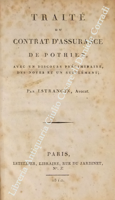 Traite du contrat d'assurance avec un discours preliminaire, des notes et un supplement; par Estrangin