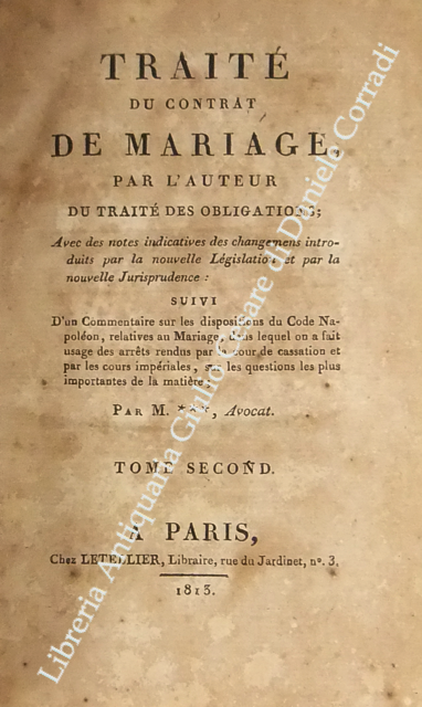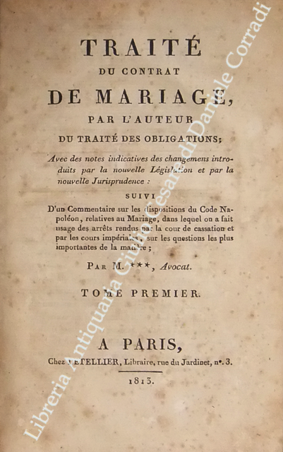Traite du contrat de mariage avec des notes indicatives des changemens introduits par la nouvelle Legislation et par la nouvelle Jurisprudence suivi d'un commentaire sur les dispositions du Code Napoleon, relatives au mariage, dans lequel on a fait usage des arrets rendus par la cour de cassation et par les cours imperiales, sur les questions les plus importantes de la matiere