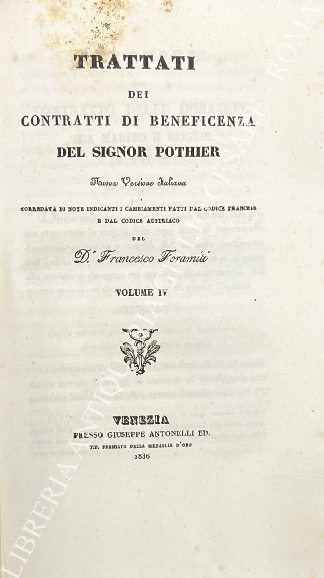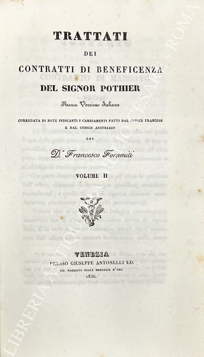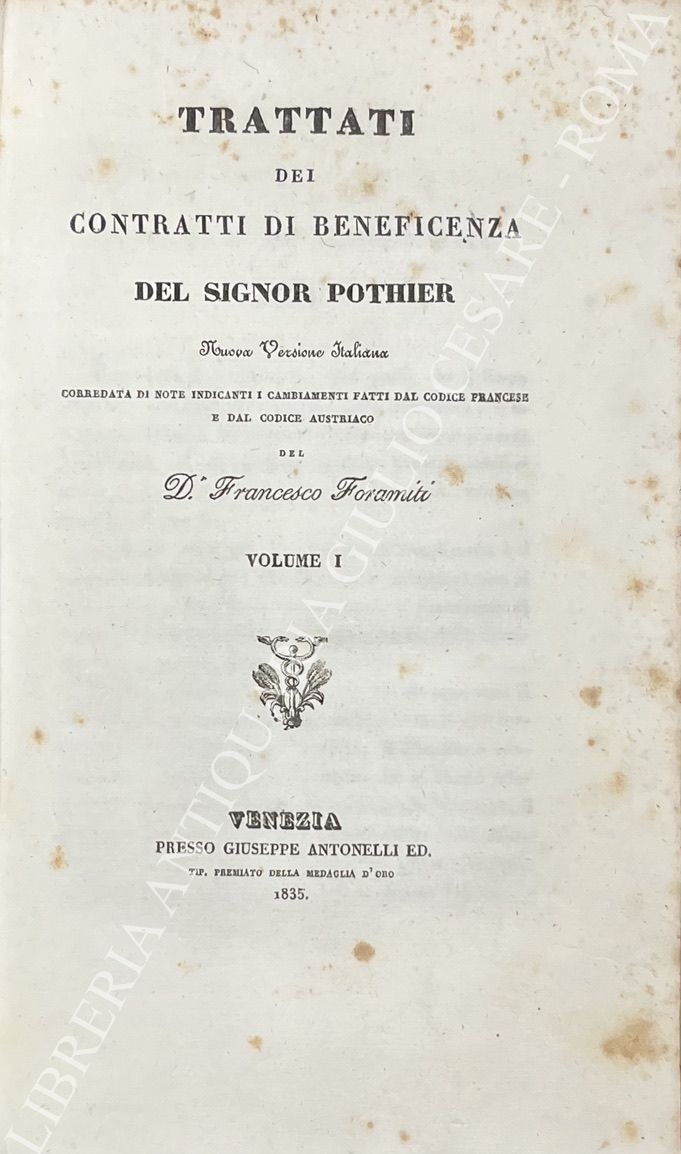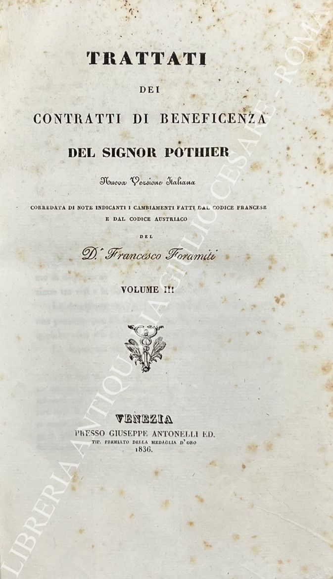 Trattati dei contratti di beneficenza. Nuova versione italiana corredata di note indicanti i cambiamenti fatti dal Codice Francese e dal Codice Austriaco del D. Francesco Foramiti
