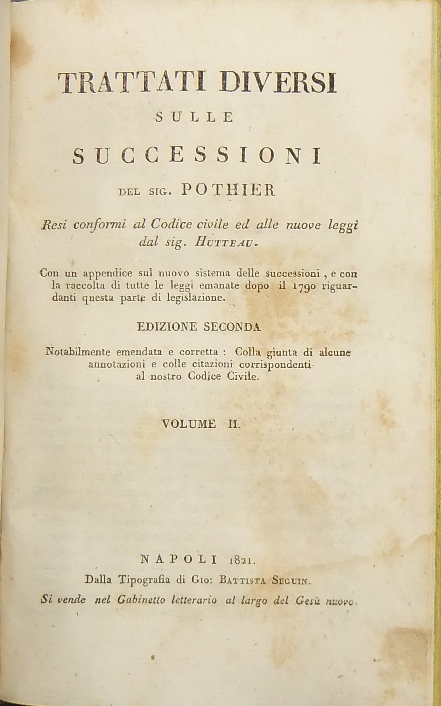 Seconda edizione notabilmente emendata e corretta. Colla giunta di alcune annotazioni e colle citazioni corrispondenti al nostro Codice civileLuogo: Napoli