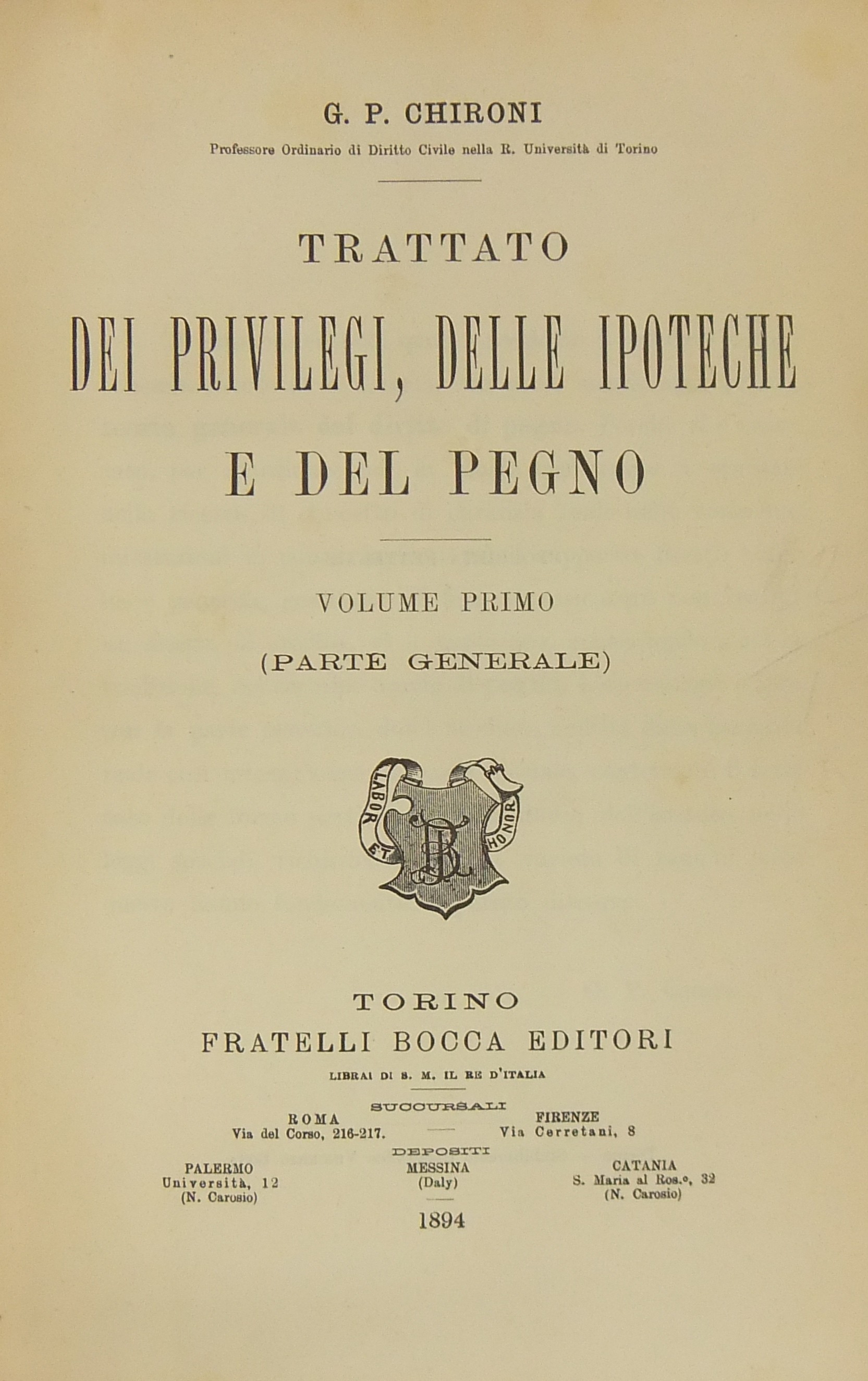 Trattato dei privilegi, delle ipoteche e del pegno. Vol. I - Parte generale; Vol. II - Parte speciale