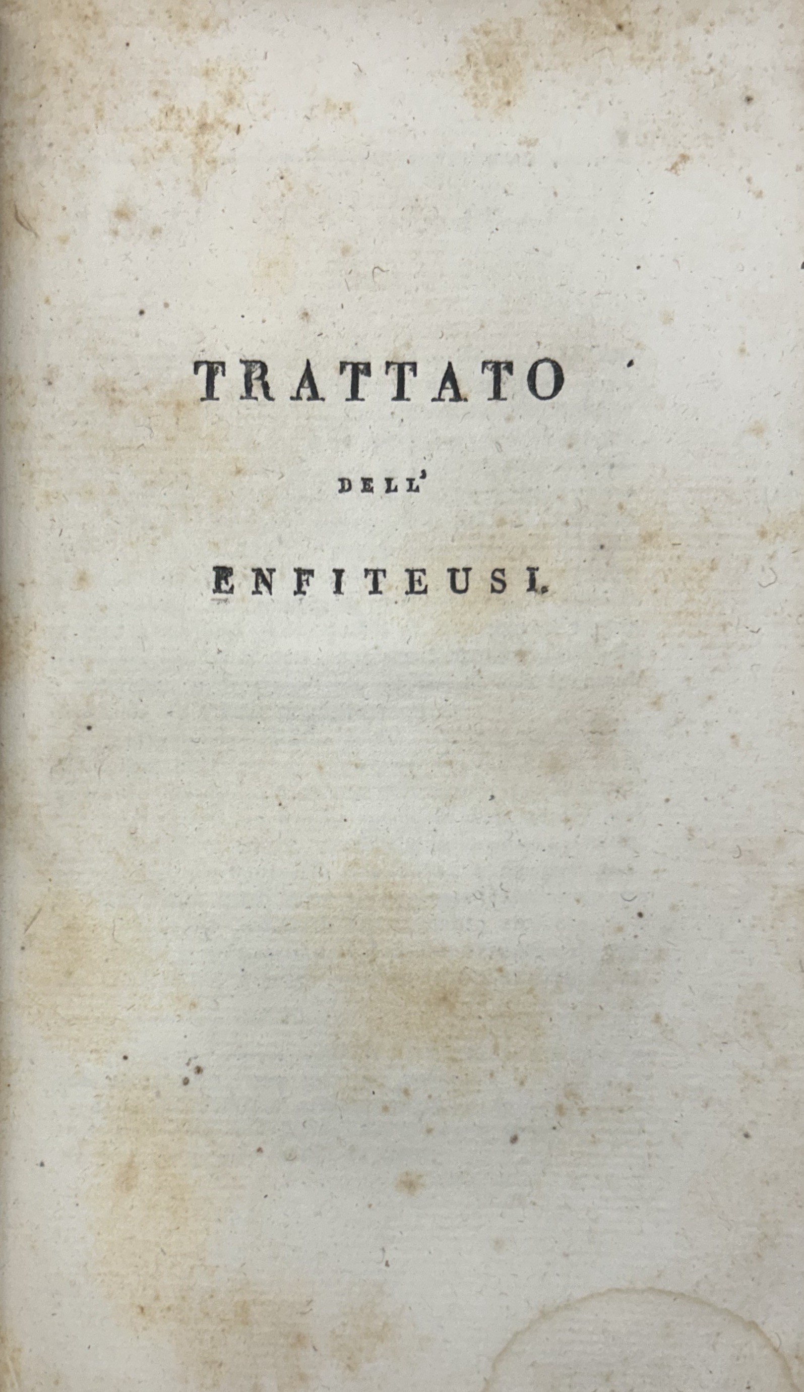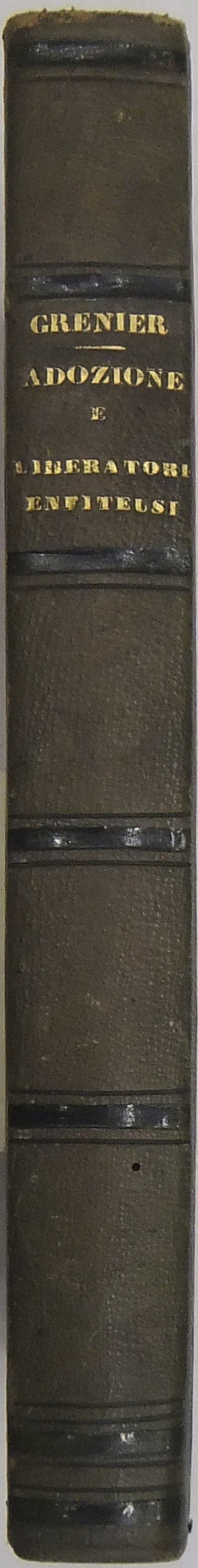 Trattato dell'adozione e della tutela officiosa ovvero Analisi ragionata del titolo del codice civile relativo a tali materie preceduto da un discorso sull'adozione del Signor Barone Grenier.. Prima versione italiana eseguita sull'ultima edizione francese ed adattata alle leggi attuali del Regno delle due Sicilie dal Signor.. UNITO A: Trattato dell'enfiteusi (Autore anonimo senza luogo editore e data di edizione)
