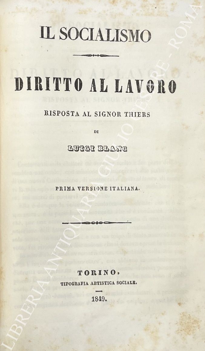 Trattato della proprietà , del comunismo, del socialismo, dell'imposta. Libri quattro. Prima versione italiana. UNITO A: Blanch Luigi - Il Socialismo. Diritto al lavoro. Risposta al Signor Thiers. Prima versione italiana