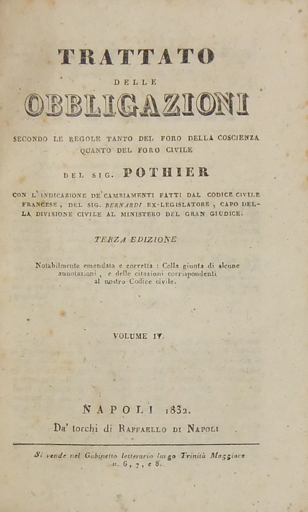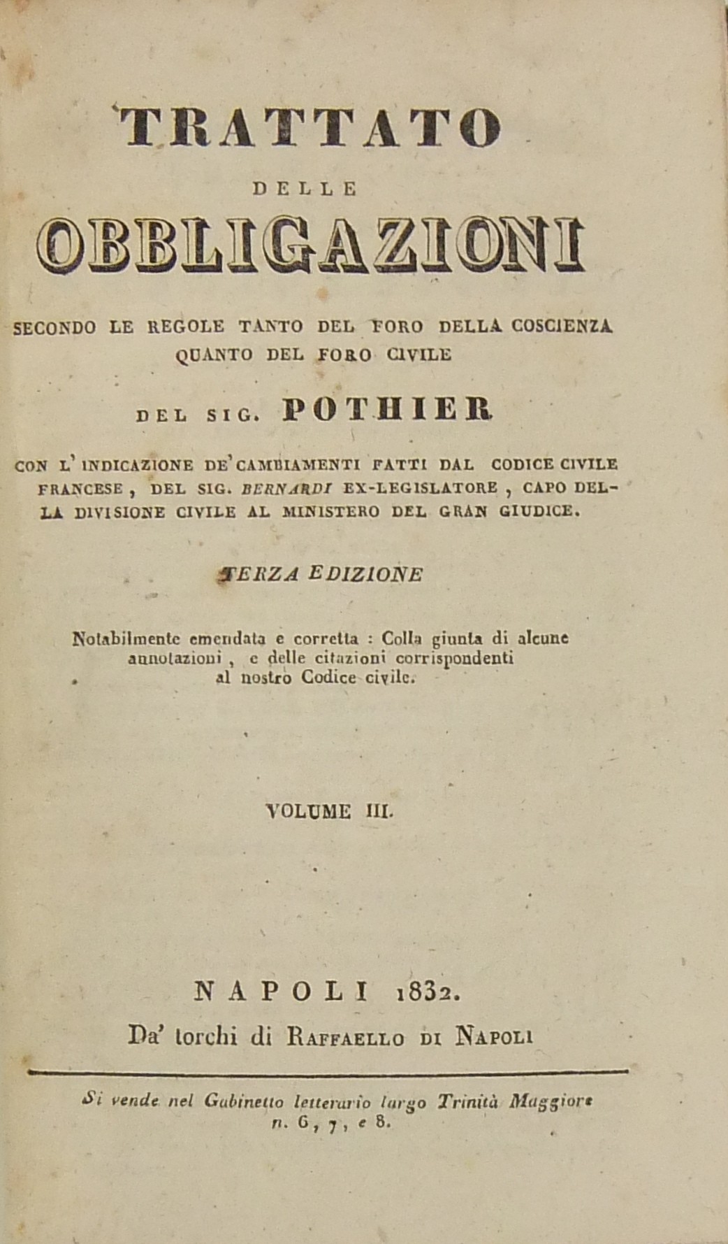 Terza edizione notabilmente emendata e corretta Colla giunta di alcune annotazioni e delle citazioni corrispondenti al nostro Codice civileLuogo: Napoli
