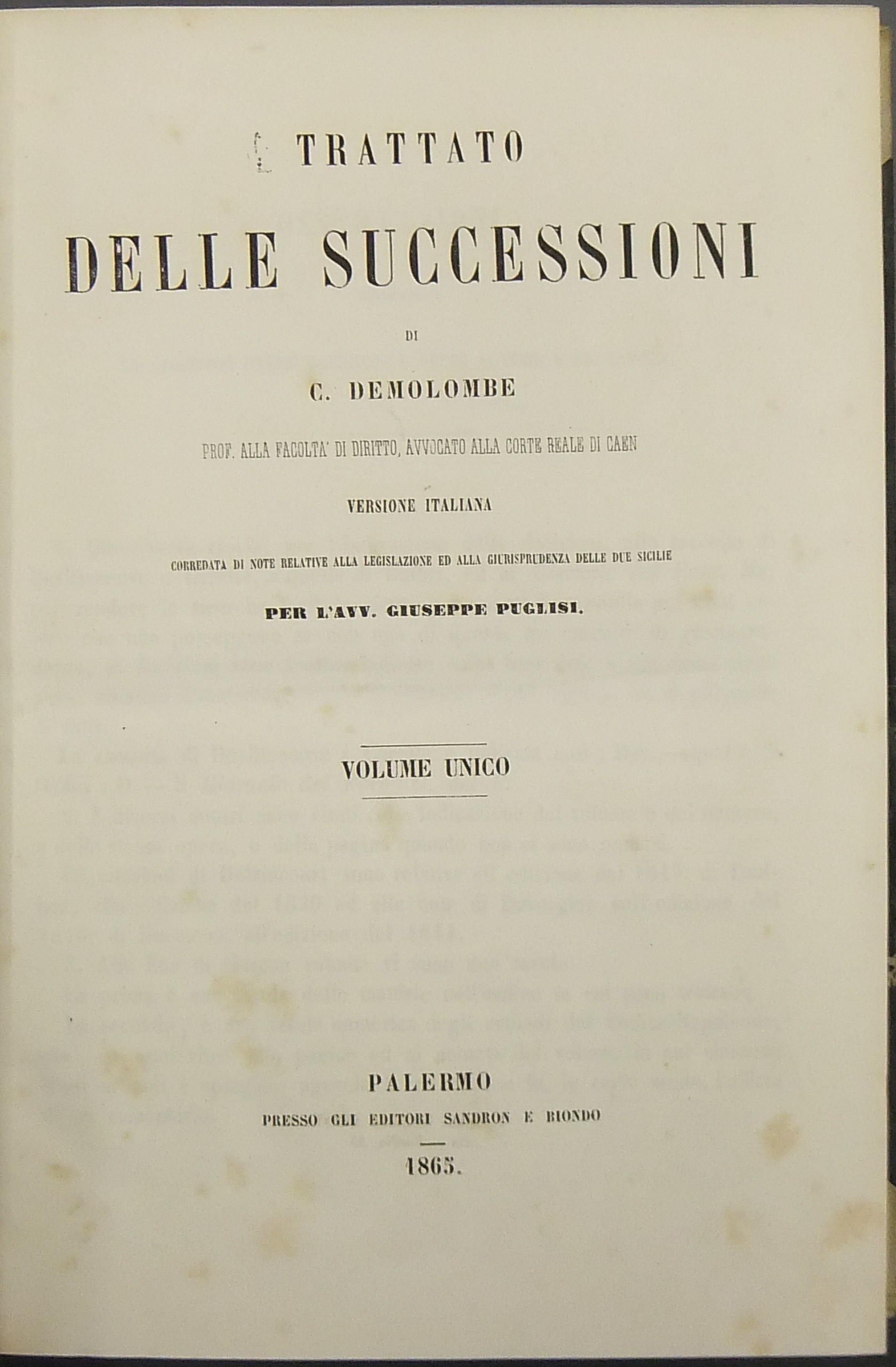 Trattato delle successioni. Versione italiana corredata di note relative alla legislazione ed alla giurisprudenza delle Due Sicilie per l'Avv. Giuseppe Puglisi