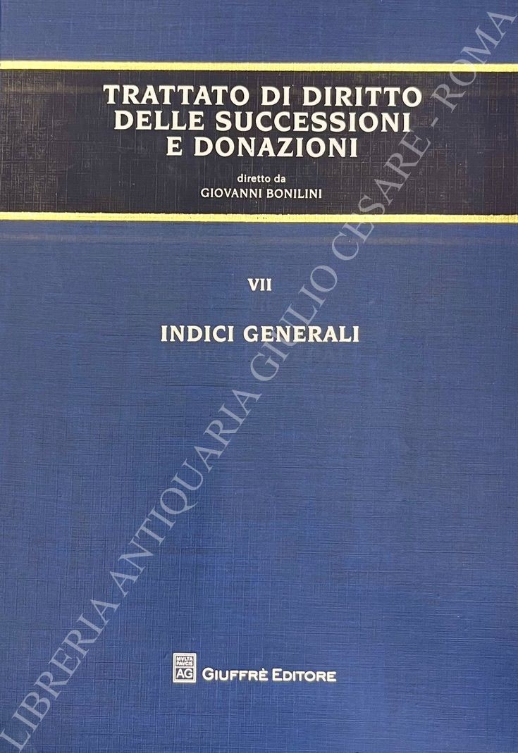 Trattato di diritto delle successioni e donazioni. Vol. I - La successione ereditaria; Vol. II - La successione testamentaria; Vol. III - La successione legittima; Vol. IV - Comunione e divisione ereditaria; Vol. V - La successione mortis causa nel diritto processuale civile, fallimentare, del lavoro, internazionale privato, penale, processuale penale, tributario; Vol. VI - Le donazioni; Vol. VII - Indici generali