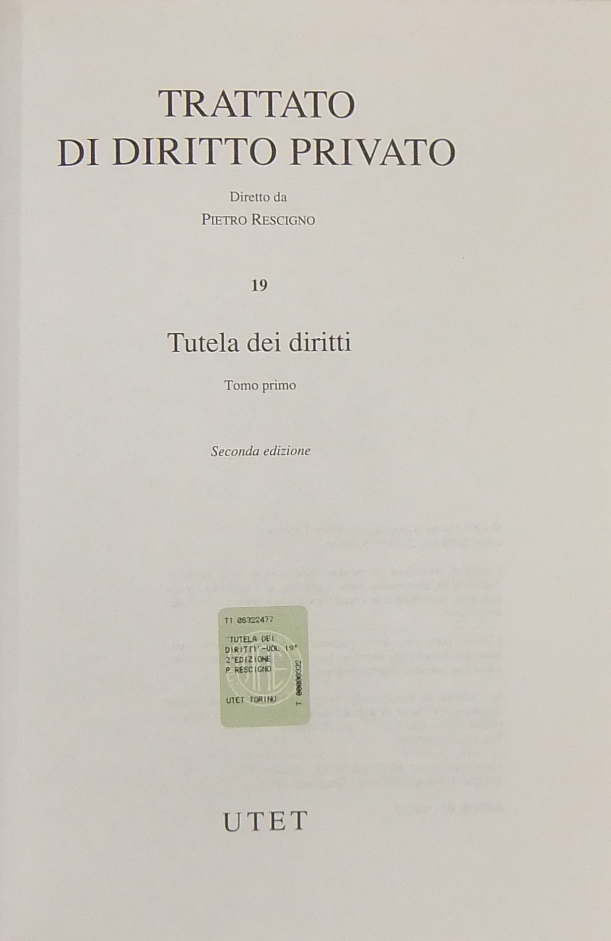 Trattato di diritto privato. Voll. XIX-XX - Tutela dei diritti