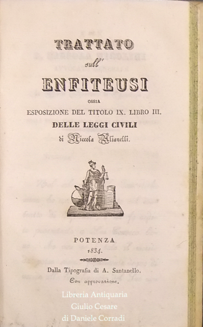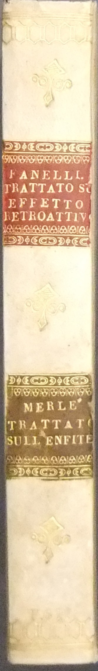 Trattato sull'effetto retroattivo del Conte Merlin ... tradotto dal francese da Lelio M. Fanelli. UNITO A: Niccola Alianelli - Trattato sull'enfiteusi. Potenza, Santanello, 1834