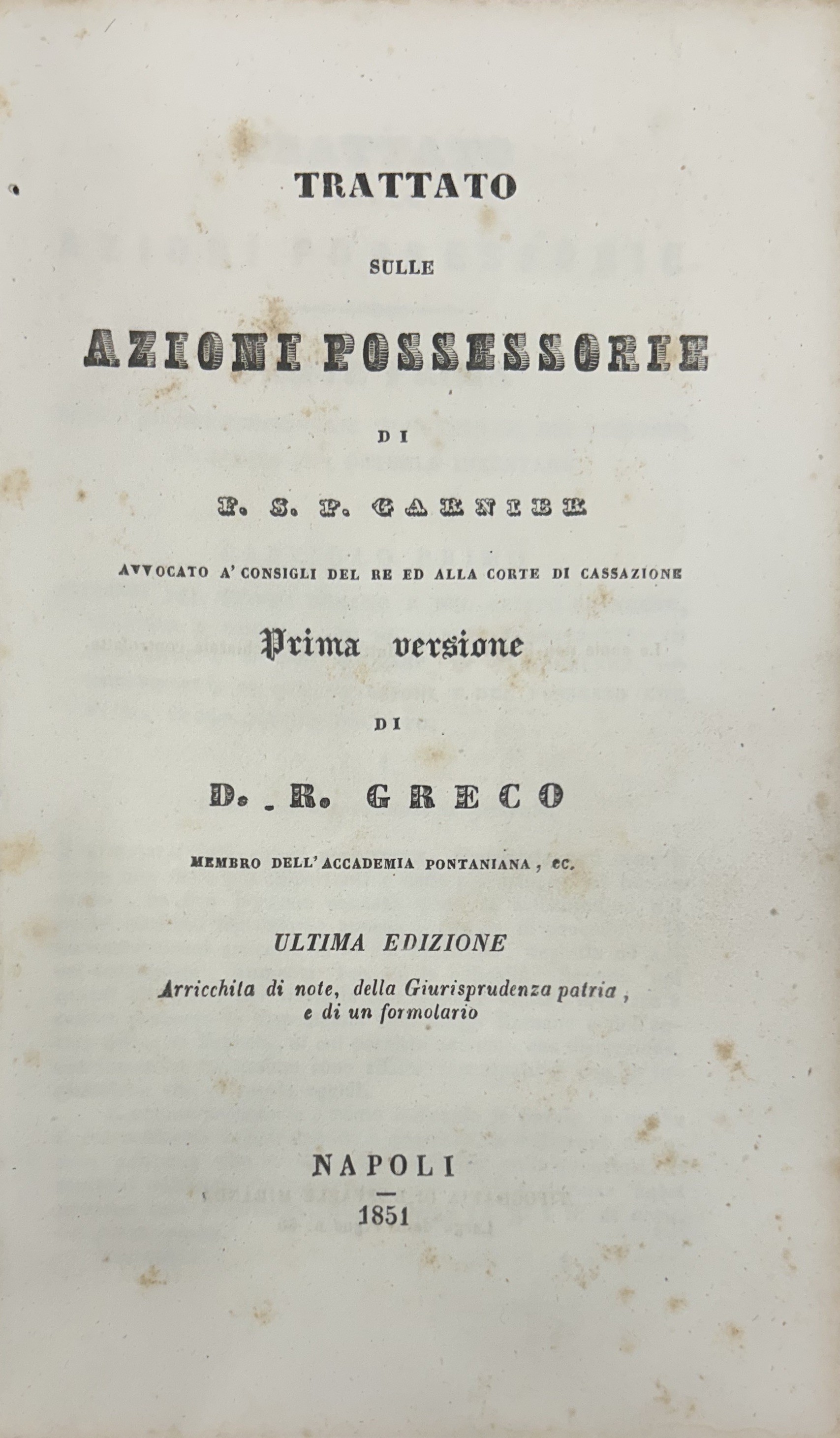 Trattato sulle azioni possessorie. Prima versione di R. Greco