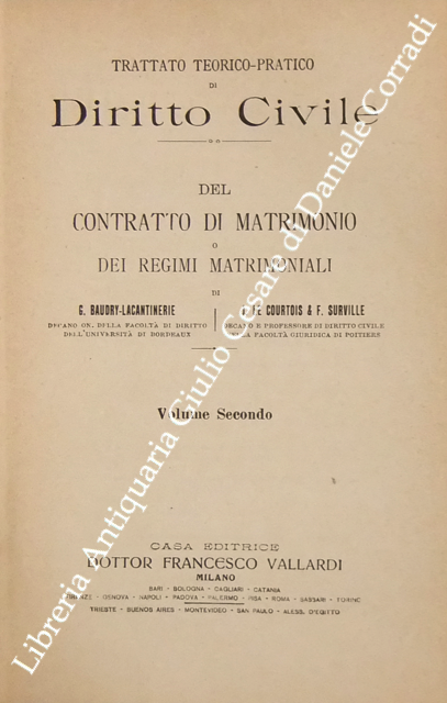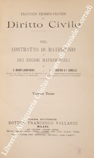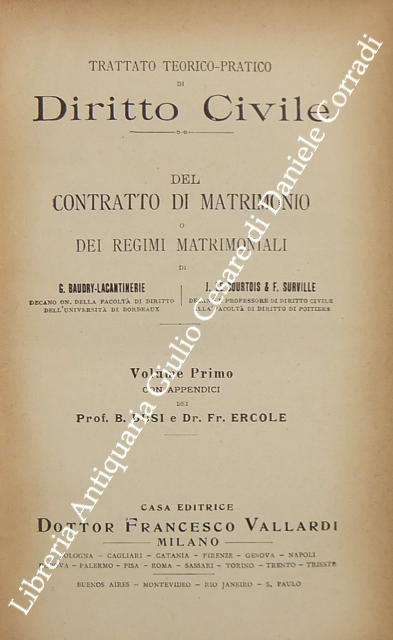 Trattato teorico pratico di diritto civile. Del contratto di matrimonio o dei regimi matrimoniali. Con appendici dei Prof. B. Dusi e Dr. Fr. Ercole