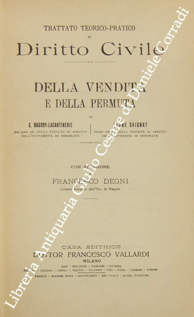 Trattato teorico pratico di diritto civile. Della vendita e della permuta. Con addizione di Francesco Degni