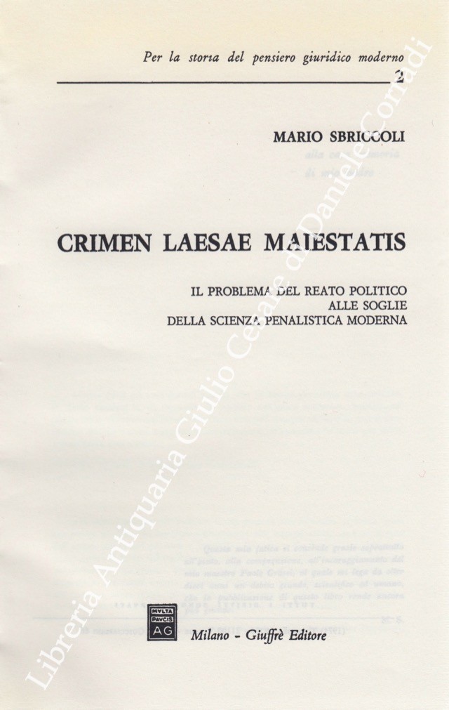 Crimen laesae maiestatis. Il problema del reato politico alle soglie della scienza penalistica moderna