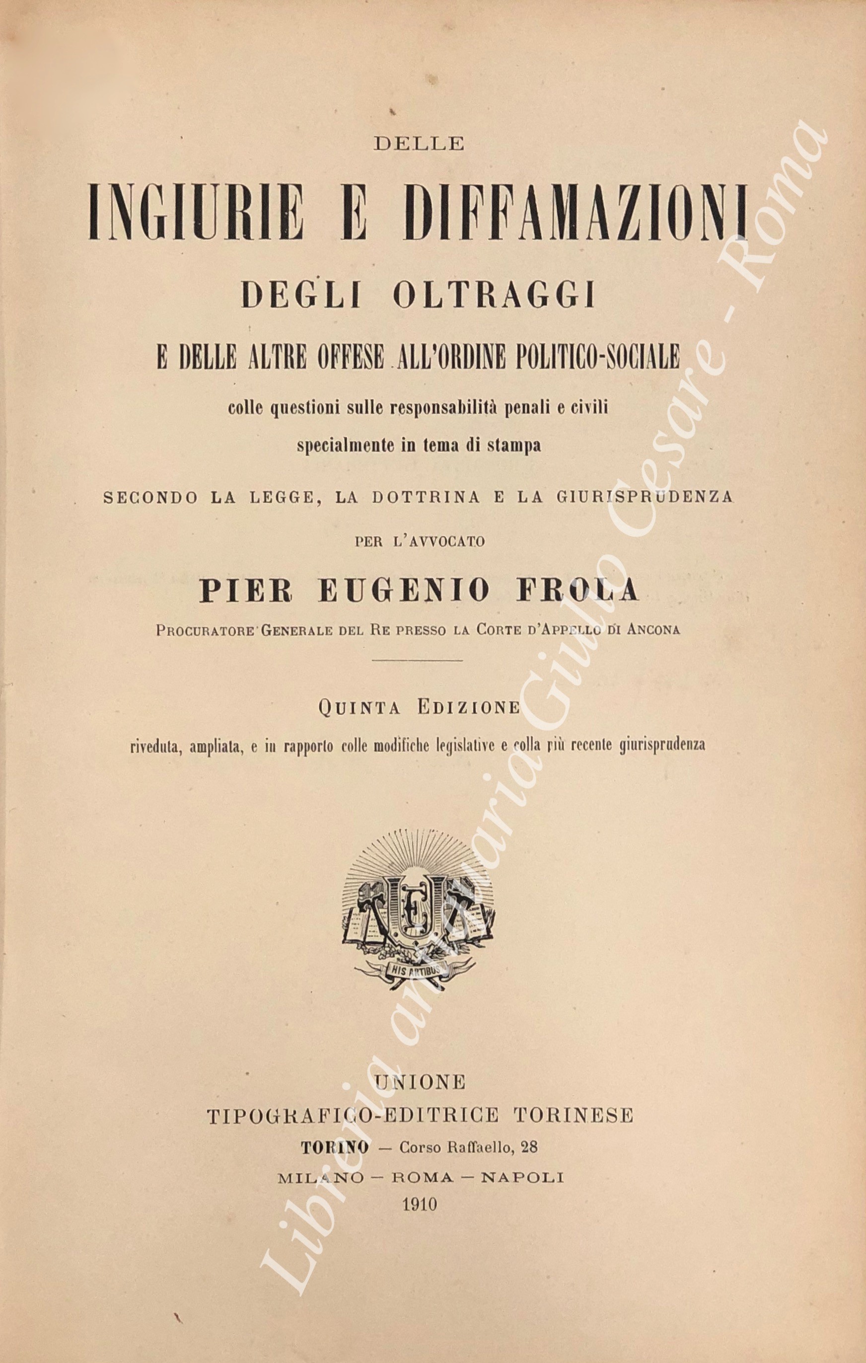 Delle ingiurie e diffamazioni degli oltraggi e delle altre offese all'ordine politico-sociale specialmente in tema di stampa secondo la legge la dottrina e la giurisprudenza
