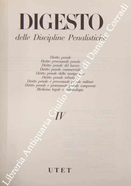 Digesto. Quarta edizione. Discipline penalistiche. Vol. IV
