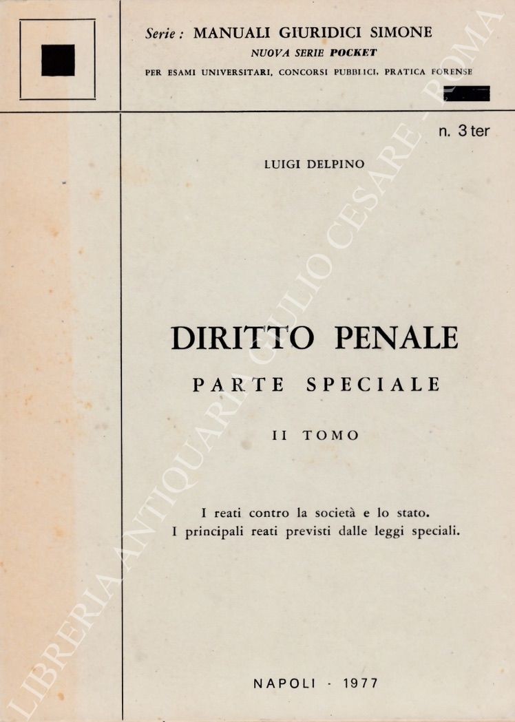 Diritto penale. Parte speciale. Vol. I - I reati contro l'individuo e la società ; Vol. II - I reati contro la società e lo Stato. I principali reati previsti dalle leggi speciali