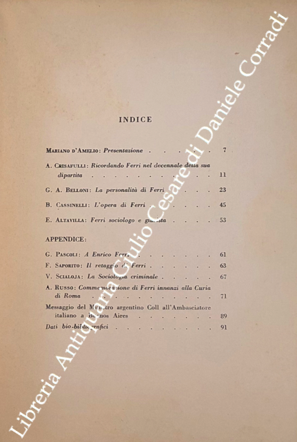 Enrico Ferri e la scienza penale italiana. Pagine di: Altavilla, Belloni, Cassinelli, Coll, Crisafulli, Pascoli, Russo, Saporito e Scialoja. Con presentazione di S.E. Mariano D'Amelio