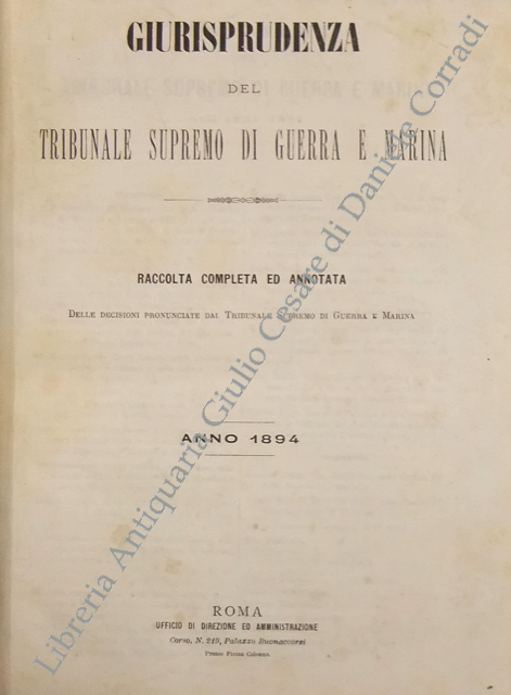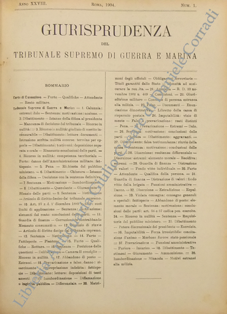 Giurisprudenza del Tribunale Supremo di Guerra e Marina. Raccolta completa ed annotata delle decisioni pronunciate dal Tribunale Supremo di Guerra e Marina. Anno 1893-1906