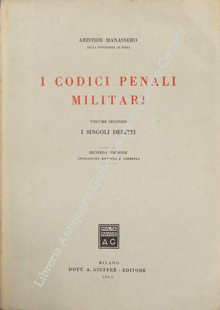 I codici penali militari. Vol. I - Parte generale. Procedura; Vol. II - I singoli delitti